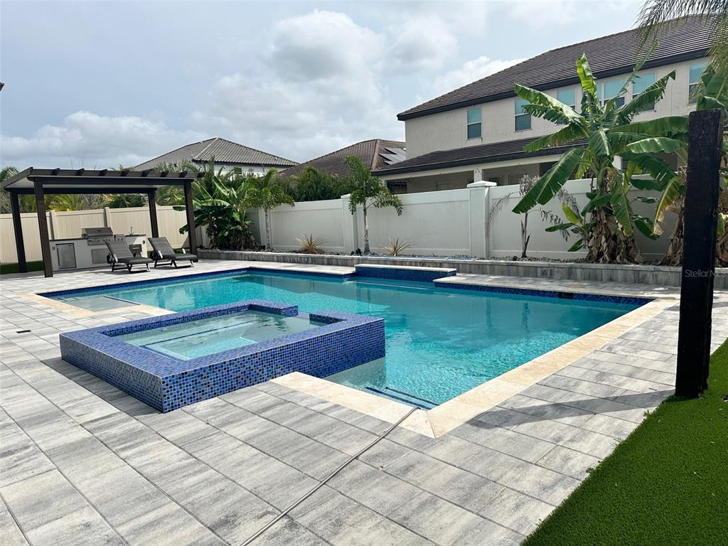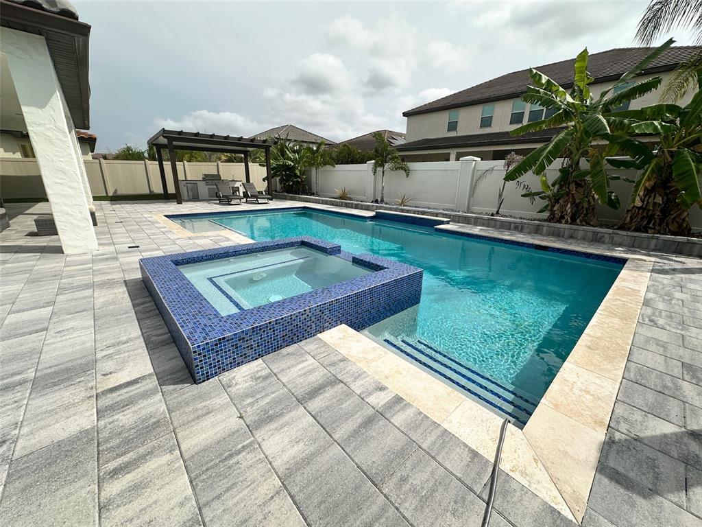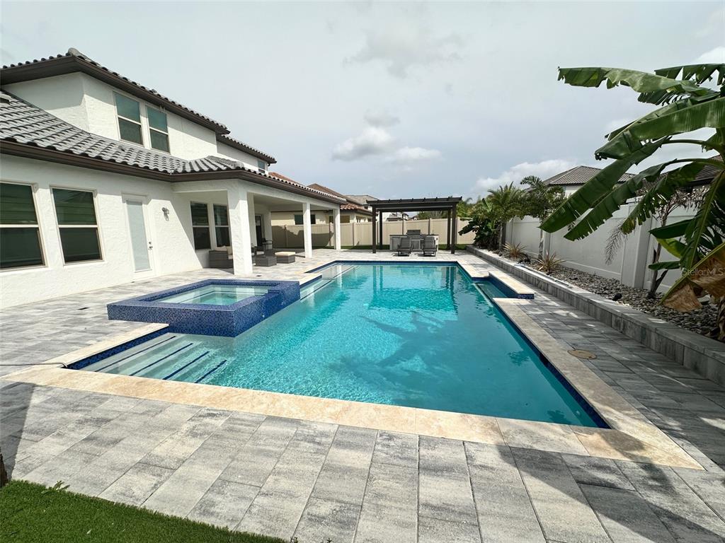 Gorgeous house for rent at the luxury community of PARKSIDE, close to Disneyworld. UNFURNISHED. This amazing home has upgrades all over, 5 BEDROOMS, 4 BATHROOMS, HALF BATHROOM, 1 OFFICE/DEN, LAUNDRY ROOM, LOFT, SMALL KITCHEN upstairs, 3 CAR GARAGE, storage under the stairs and storage attic in the garage, custom closets, ELECTRICAL VEHICLE CHARGER INSIDE THE GARAGE, OUTDOOR KITCHEN, SALTWATER SWIMMING POOL, SPA WITH JETS AND SMARTPHONE APP. The amazing custom swimming pool itself is a masterpiece, measuring approximately 36 ft x 18 ft; the two shallow ends are 4 ft deep and the middle is 6 ft deep - considered a sports pool - with sun shelf, heated spa with jets and lighting. The extended pergola with a brand new outdoor kitchen by the pool is the perfect place for barbecue. The patio area provides ample space for lounging and sunbathing. Parkside amenities including a clubhouse, swimming pool, tennis court, soccer, playground, and picnic area. MUST SEE IT.