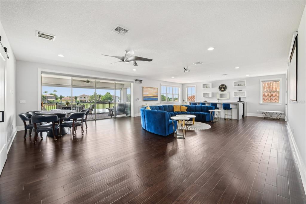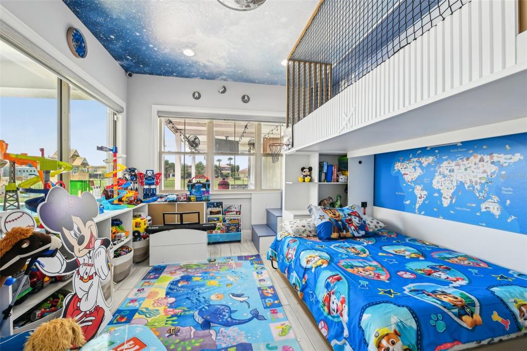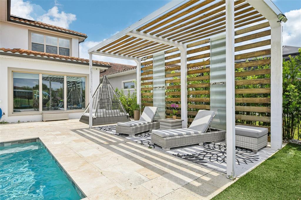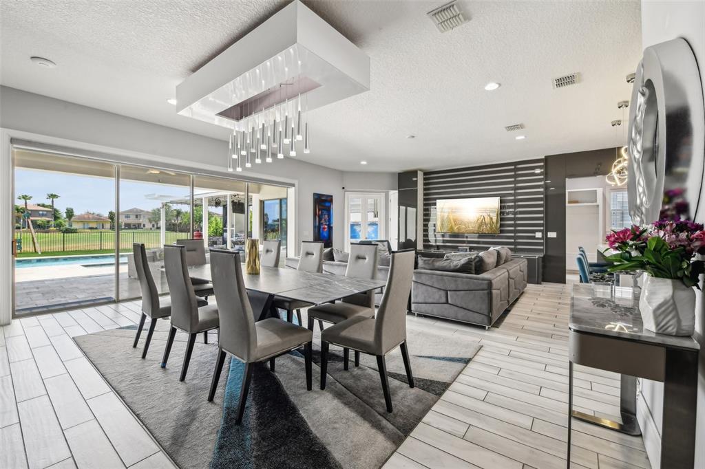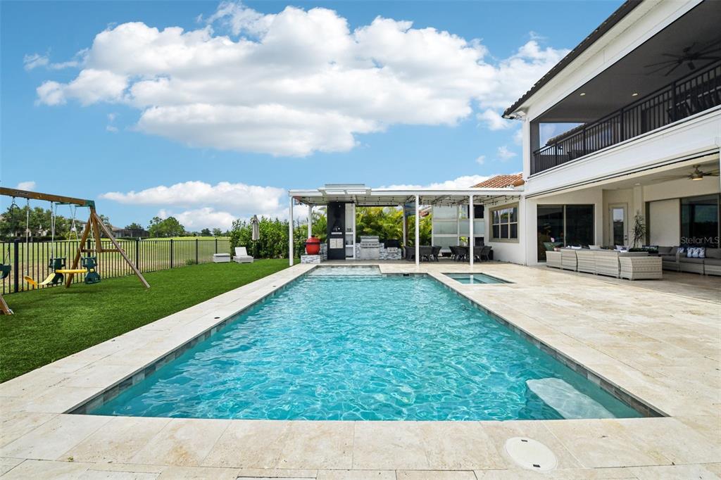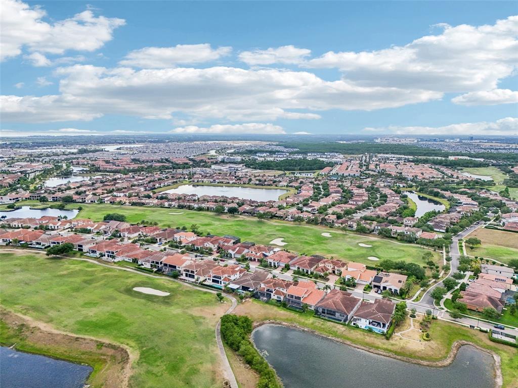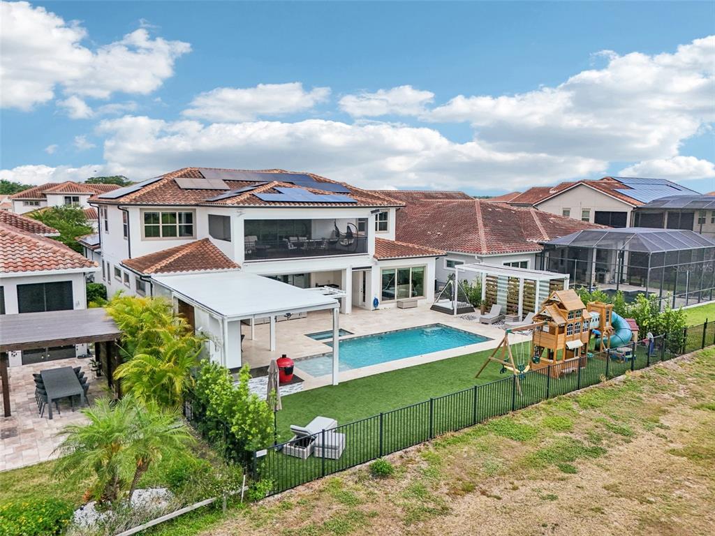PRICE IMPROVEMENT AND SELLER IS OFFERING $30,000 BUYER CONCESSION! Welcome to 13136 Alderley Drive – a luxurious 5-bedroom, 5-bath estate offering over 5,400 heated sq ft of exquisitely designed living space in one of Orlando's most sought-after gated golf course communities, Eagle Creek. Situated on an oversized lot with sweeping views of the 16th hole, this home defines Orlando Florida luxury living featuring a heated waterfall pool and spa, expansive sunbathing areas, an outdoor kitchen with pizza oven, a private playground and the back porch which is an entertainers dream. Inside, a grand entryway with a dramatic staircase sets the tone for the open-concept layout connecting the living and dining rooms to a gourmet kitchen with high-end appliances and elegant two-tone quartz waterfall countertops. The primary suite is a serene retreat with private pool access, a spa-inspired en-suite featuring a dual waterfall walk-in shower, soaking tub, dual vanities, and a custom walk-in closet with built-ins.Upstairs, enjoy a spacious loft with a wet bar and direct access to an expansive balcony – the perfect place to unwind and watch the beautiful sunsets over the golf course. Additional features include a wine room, dual laundry rooms, a drop zone, built-in storage, a 3-car garage with extra storage, retractable screens and solar panels which provide lower utilities. With a golf cart drop-off to the on-site elementary school, this home blends elegance, convenience, and family-friendly amenities like a resort style pool area in the heart of Lake Nona.Don’t miss your opportunity to own this one-of-a-kind dream home in the gated community of Eagle Creek! Close to Disney, Medical City, Orlando International Airport, Medical City (Nemours, VA Hospital), Beaches and USTA. Zoned for Florida Dept of Education A rated schools.