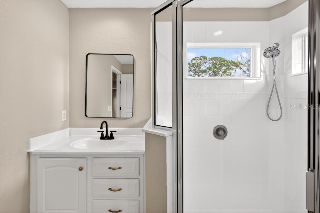 This fantastic home is zoned for top-rated Seminole County schools and offers both comfort and extensive updates throughout. The remodeled primary suite features a spacious walk-in closet, upgraded bathroom with a stand-alone shower, and double vanities. A 19x17 screened-in porch overlooks the fully fenced backyard, creating the perfect space to relax or entertain. The property features natural gas and an oversized paver driveway that can accommodate 4–6 vehicles, along with a paver walkway leading to the expansive back porch. Significant improvements have been completed throughout the home. The entire exterior has been freshly repainted, including a custom border detail along the front of the home. The interior has also been completely repainted, including ceilings, bedrooms, closets, and doors. All door handles and hinges have been replaced, and modern light fixtures, ceiling fans, and bathroom lighting have been updated throughout to give the home a fresh, modern feel. Both the primary and guest bathrooms have been professionally reglazed, making the tile look like new and providing a clean, refreshed appearance. One of the standout features of this home is the primary bedroom addition, which makes the layout larger and more unique compared to others in the neighborhood. The four-bedroom floor plan provides a spacious living and entertaining area, ideal for gatherings and everyday living. Major systems have already been taken care of for peace of mind, including a new roof 2024, updated AC system 2022, and a replaced septic tank and drainfield. Energy efficient, insulated windows, and sliding glass doors With NO HOA and extensive upgrades already completed, this home is truly move-in ready for the next buyer to enjoy. (Please reach out for the walk thru video link)