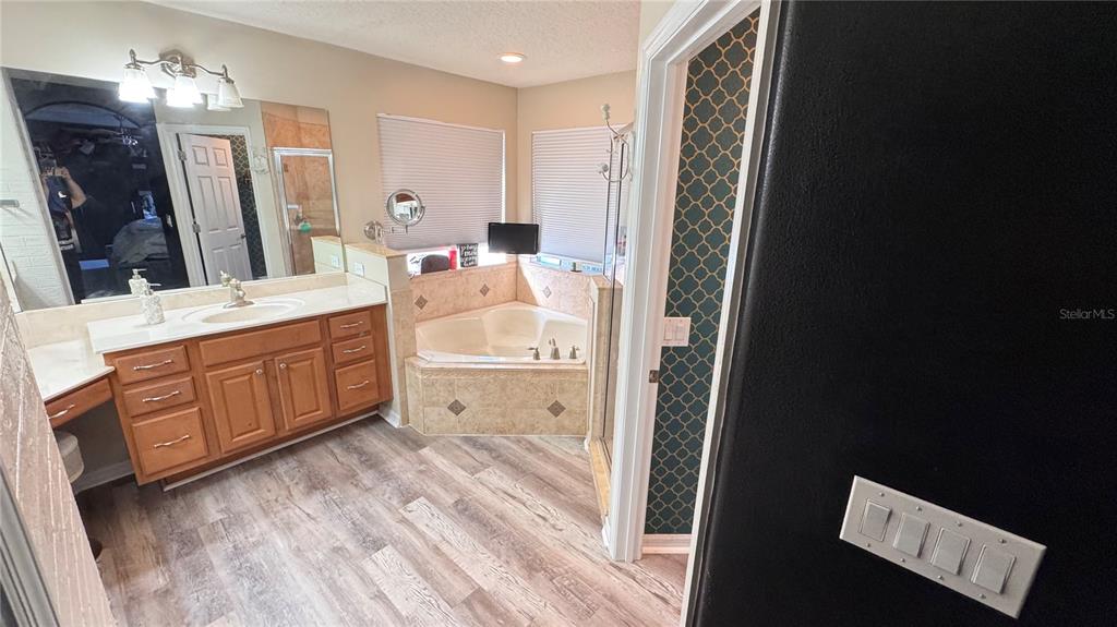 This beautiful MOVE-IN-READY two-story home is located in the highly desired community of Summerport in Windermere! The Wow factor begins the moment the front door opens to a towering cathedral ceiling making for a dramatic and elegant entry into the main living area. The open floor plan creates a seamless flow throughout the home, whereby the family room opens to the kitchen and dinette space, with brand New beautiful Gray Travertine throughout all countertops, that provides the perfect entertaining opportunity! A freshly painted neutral color palette, additional recessed lighting added downstairs, and luxury vinyl flooring in all the entertaining areas are just some of the exceptional design elements. Natural gas range and stainless-steel appliances, coffee/wine station, and a huge center island with breakfast bar creates a gourmet kitchen. Large windows and sliding glass doors allow for an abundance of natural lighting and beautiful views overlooking a screen enclosed Lanai with a gazebo to enjoy relaxing evenings. Upstairs are four of the five bedrooms and two full baths, completely Renovated with Galaxy stones From. floor to ceiling, and other bathroom renovated also with High technology toilet flushing by itself ; the fifth guest bedroom is located on the first floor with direct access to the third full bathroom. All Flooring New and recently changed upstairs. The Primary Suite boasts an enormous walk-in closet, and en-suite with double bowl vanity, private water closet, a large soaking tub and separate shower stall. The upstairs Theater with 4 cinema chairs is a great place for movies and popcorn with an oversized 9' projection screen! 2 New Air Conditioners-1 replaced in 2021, 2nd unit replaced in June 2022. Brand New Roof Sept /2023 (Lifetime warranty) Summerport residents enjoy the beautiful community Clubhouse with an oversized swimming pool, tennis/pickleball and basketball courts, workout room, and walking/jogging paths. Located in TOP RATED school zones, this fabulous home is close to all major shopping and boutiques, fine dining as well as Disney attractions with easy access to Downtown Orlando and the Orlando International airport.