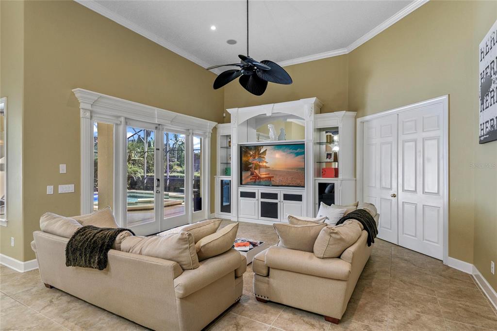 Experience the Florida lifestyle in this stunning FULLY FURNISHED 5-Bed/4-Bath pool home on over 1/2-acre, with a welcoming open floor plan spanning 4,500 square feet, spectacular Theater Room, custom upgrades and designer accents throughout, and new AC system in August 2025. Situated across from the community park and tennis on one of the best waterfront lots in sought-after gated Tildens Grove, offering a perfect blend of privacy and serene panoramic views. Step into elegance in the light and bright formal Living Room enhanced by a stunning Fireplace, Pool and Lanai views, and high Coffered Ceiling. The equally exquisite Formal Dining Room is also adorned with a Coffered Ceiling and ample natural lighting. A beautiful open Island Kitchen at the center of this home, perfectly situated for accommodating and entertaining friends and family, boasts Granite Counters, built-in Wall Oven and microwave, granite back splash, abundant storage in 42 wood cabinetry with pull outs, 5 burner Gas Stove and high-end stainless appliances, built-in cabinet Pantry. The Kitchen opens to the Dinette area with large picture window overlooking the Lanai and Pool, and Family Room ideal for entertaining with Built-Ins, storage and gorgeous details with French Doors leading to the outdoor living space. Relax, play, or entertain outdoors in the voluminous Pool with Spa and expansive covered Lanai, providing shaded space perfect for enjoying refreshments as you gaze across the water. The spacious Owner’s Suite is a true retreat tucked away on one side of the home, including an elegant bedroom with Sitting Area, stately entertainment wall unit, Double-Tray Ceiling, handsome wood flooring, French Door access to Lanai, and a generous walk-in California Closet system with dressing space. The finely appointed, light-filled Ensuite Bath boasts split sink vanities, large walk-through dual-head shower, Jetted Garden Tub, and private water closet. On the opposite end, the 2nd and 3rd bedrooms share a convenient Jack and Jill bathroom. The private 4th bedroom with Ensuite Bath is perfect for your visiting guests. The 5th bedroom adjacent to the Foyer is currently utilized as a den/home office. Enjoy a home cinema experience in the fabulous 6-seat Theater Room, equipped with great acoustical audio, large movie screen, leather recliner seating, gorgeous Custom Millwork with concealed column storage, all overlooking the Scenic Pond. Located in the hallway between the Kitchen and Dining Room are 2 extravagant built-in Mahogany glass-front cigar Humidors including Wine Storage to display and preserve cherished collections. High ceilings and Crown Molding accents throughout exude a sense of grandeur. French Doors from multiple rooms let you open the home to the outdoors space. Large, covered Lanai with a built-in grill, sink and counter space, screen enclosed Pool and heated Spa with a panoramic pond view. The neighborhood is quiet and private, with 140 luxury homes, in the top school districts, centrally located for convenience to Windermere's dining, shopping and culture, local theme parks, 429, I-4, and Florida's Turnpike. Whether you're entertaining or seeking a peaceful retreat, this home delivers on every level.