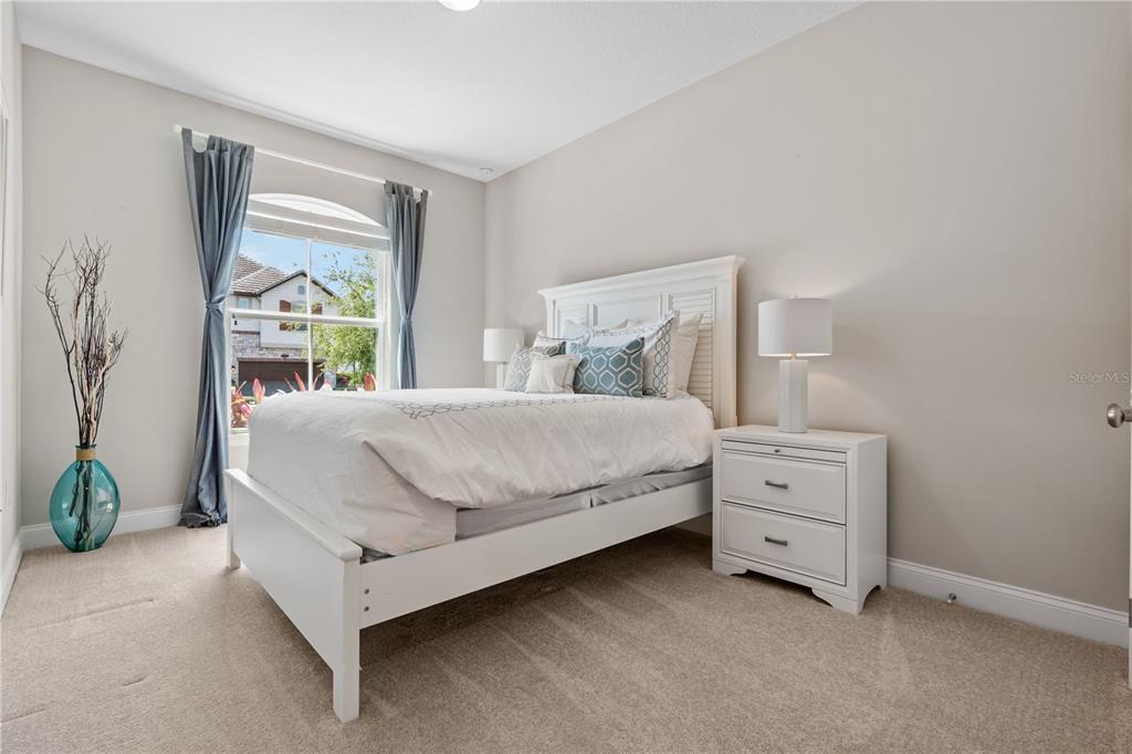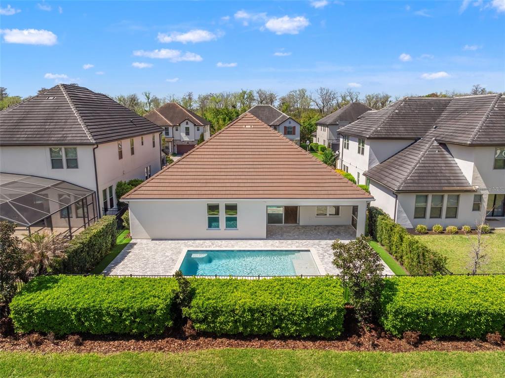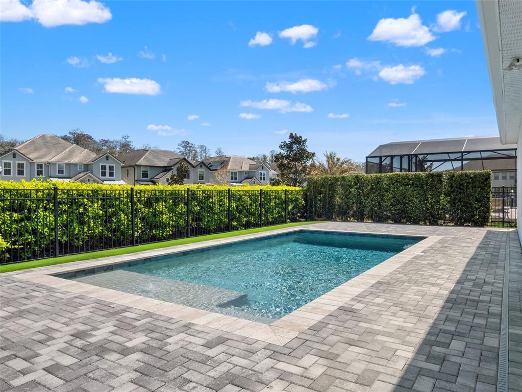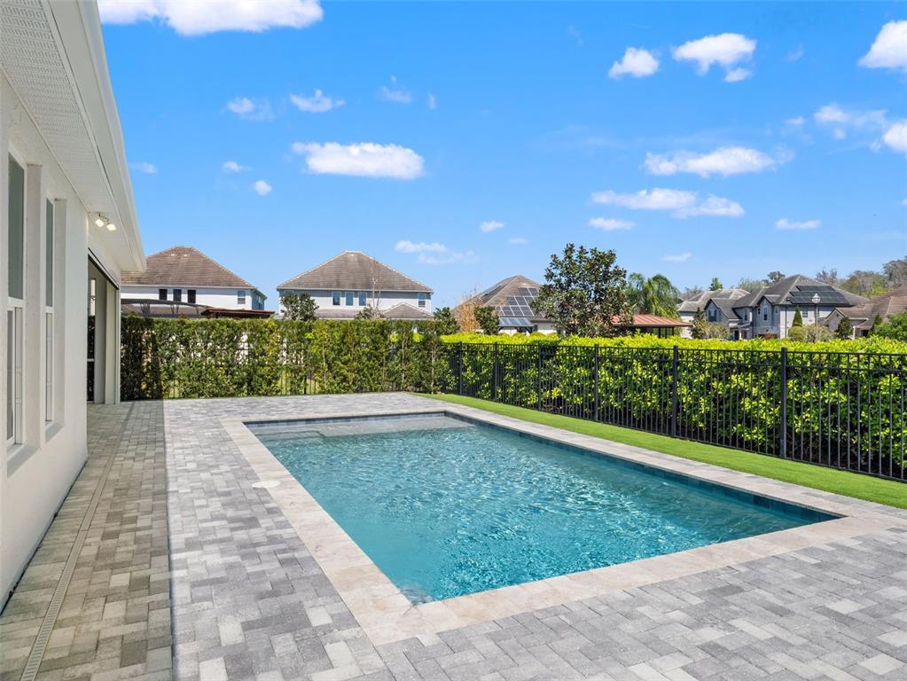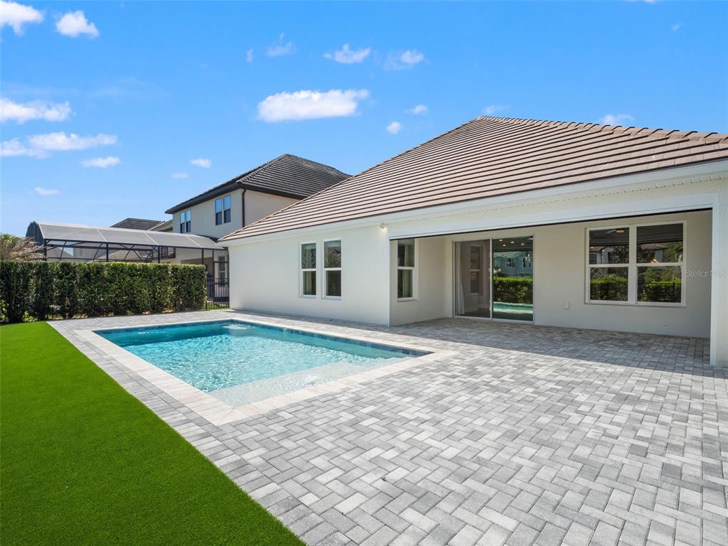 One or more photo(s) has been virtually staged. BACK ON MARKET! PRICED TO SELL! Incredible value! Welcome to Belle Vie, Lake Nona’s French Country inspired community of only 80 homes, where charm meets luxury living. With scenic parks, walking trails, a peaceful wetlands boardwalk and no CDD, this sought after enclave is truly one of a kind. Homes here rarely become available, only one has sold in the past year! This immaculate one-story pool home stands out for its pristine condition, thoughtful design, and ideal setting. Perfectly positioned on a private, fenced lot with low-maintenance turf and views of a lush green park space, it offers a serene backdrop just steps from the community mailbox pavilion. From the moment you arrive, you’ll be captivated by the charming curb appeal, mature landscaping, and a welcoming covered front porch that perfectly complements the home’s French Country architecture. Inside, an open-concept layout combines comfort and elegance, featuring wood-look tile floors throughout the main areas and plush carpeting in the bedrooms. The gourmet kitchen is the heart of the home, complete with an expansive quartz island with seating, stainless steel Whirlpool appliances, double ovens, 42 cabinetry, and a walk-in pantry. A dedicated office area with built-in cabinetry and desk space offers both function and flexibility, ideal for today’s work-from-home lifestyle. The spacious primary suite provides a private retreat with access to a spa-inspired bath featuring a garden tub, glass-enclosed shower, dual vanities with quartz counters, and a large walk-in closet. Three additional bedrooms and two full baths ensure ample space for family and guests. Step outside to the covered lanai with remote-controlled shade screens, the perfect spot to unwind and enjoy the sparkling private pool surrounded by tranquility. Located just 15 minutes from Orlando International Airport, 10 minutes from Lake Nona’s Boxi Park, 25 minutes from Disney, and 30 minutes from Cape Canaveral, this home offers both luxury and convenience in one of Central Florida’s most desirable areas. Homes like this in Belle Vie rarely come available, don’t miss your chance to make this exceptional property your own!