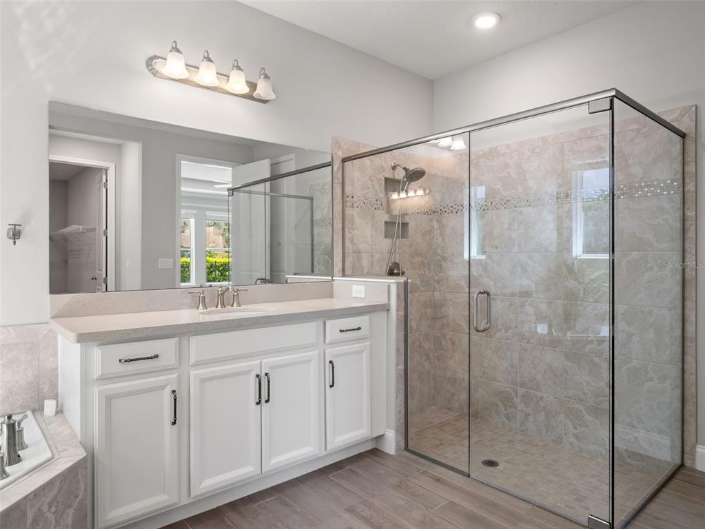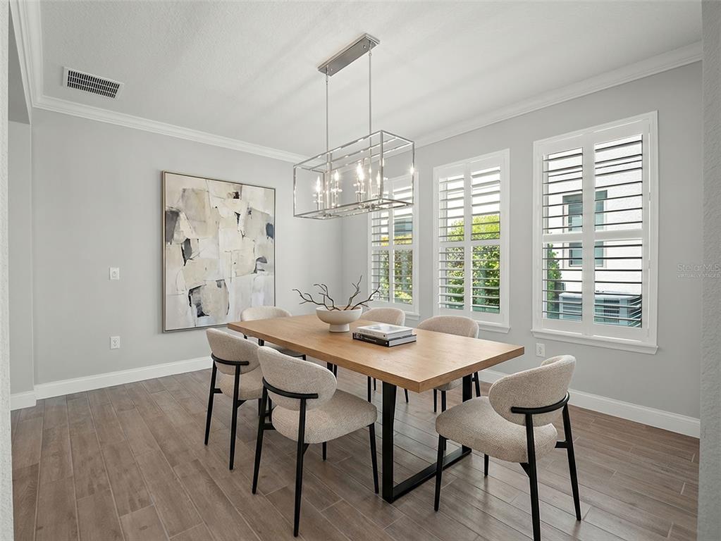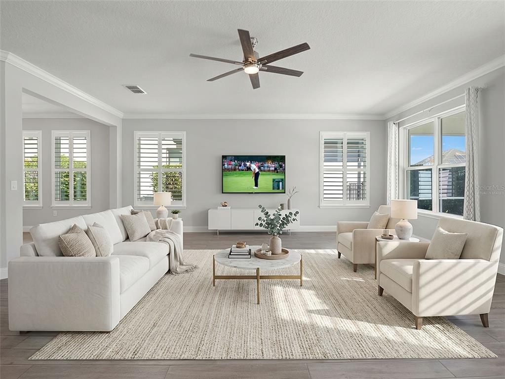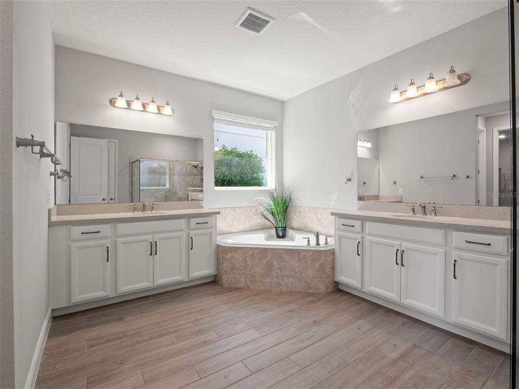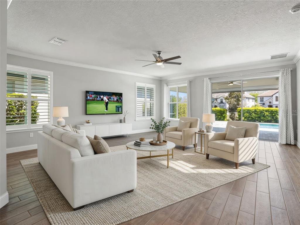 One or more photo(s) has been virtually staged. BACK ON MARKET! PRICED TO SELL! Incredible value! Welcome to Belle Vie, Lake Nona’s French Country inspired community of only 80 homes, where charm meets luxury living. With scenic parks, walking trails, a peaceful wetlands boardwalk and no CDD, this sought after enclave is truly one of a kind. Homes here rarely become available, only one has sold in the past year! This immaculate one-story pool home stands out for its pristine condition, thoughtful design, and ideal setting. Perfectly positioned on a private, fenced lot with low-maintenance turf and views of a lush green park space, it offers a serene backdrop just steps from the community mailbox pavilion. From the moment you arrive, you’ll be captivated by the charming curb appeal, mature landscaping, and a welcoming covered front porch that perfectly complements the home’s French Country architecture. Inside, an open-concept layout combines comfort and elegance, featuring wood-look tile floors throughout the main areas and plush carpeting in the bedrooms. The gourmet kitchen is the heart of the home, complete with an expansive quartz island with seating, stainless steel Whirlpool appliances, double ovens, 42 cabinetry, and a walk-in pantry. A dedicated office area with built-in cabinetry and desk space offers both function and flexibility, ideal for today’s work-from-home lifestyle. The spacious primary suite provides a private retreat with access to a spa-inspired bath featuring a garden tub, glass-enclosed shower, dual vanities with quartz counters, and a large walk-in closet. Three additional bedrooms and two full baths ensure ample space for family and guests. Step outside to the covered lanai with remote-controlled shade screens, the perfect spot to unwind and enjoy the sparkling private pool surrounded by tranquility. Located just 15 minutes from Orlando International Airport, 10 minutes from Lake Nona’s Boxi Park, 25 minutes from Disney, and 30 minutes from Cape Canaveral, this home offers both luxury and convenience in one of Central Florida’s most desirable areas. Homes like this in Belle Vie rarely come available, don’t miss your chance to make this exceptional property your own!
