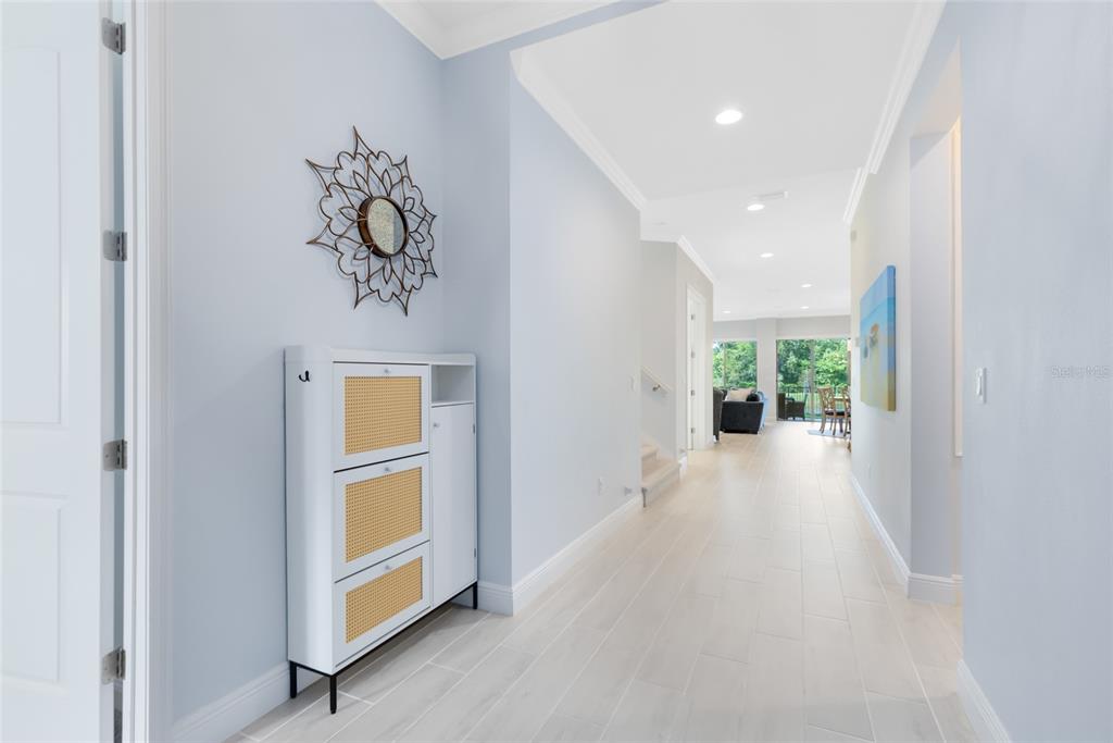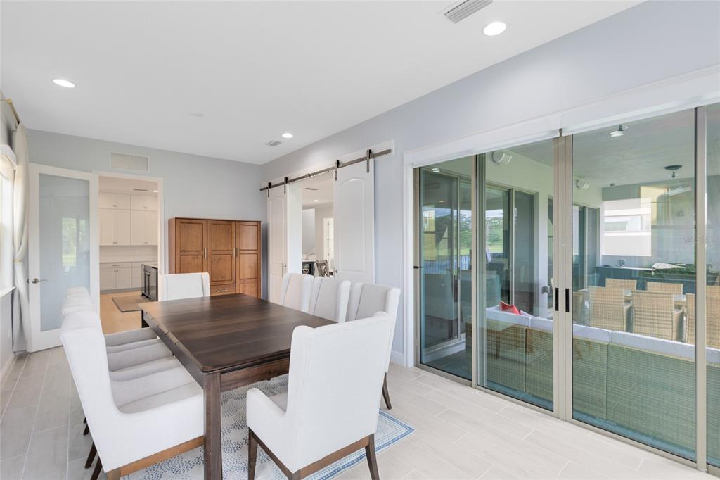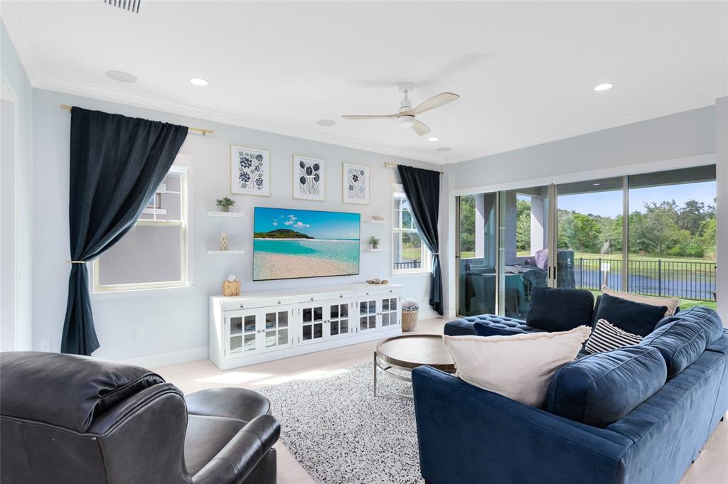 Welcome to luxury living in Eagle Creek—one of Lake Nona’s most sought-after gated golf communities. This stunning 5-bedroom, 5.5-bath residence perfectly blends elegance and everyday comfort with water views, spacious living, and thoughtful design throughout. Step inside to an inviting open floor plan highlighted by natural light, tray ceilings, and designer finishes. The gourmet kitchen features sleek quartz countertops, double ovens, a gas cooktop, walk-in pantry, and a large island that opens to the dining area and great room—ideal for gathering and entertaining. A wall of glass sliders extends the living space to the covered lanai, where you can dine al fresco or relax while overlooking the tranquil water. Upstairs, the expansive primary suite offers serene water views and private access to a covered balcony—the perfect place to enjoy your morning coffee or sunset breeze. The spa-inspired bath features dual vanities, a large glass-enclosed shower with pebble flooring, and a spacious custom closet with built-ins. Every bedroom in the home includes its own ensuite bath, offering privacy and comfort for family and guests alike. The second-floor loft serves as the ultimate hangout, complete with a wet bar and space for a theater setup or game nights. Outside, the fully fenced backyard features premium artificial turf, ideal for low-maintenance play and entertaining year-round. Eagle Creek residents enjoy resort-style amenities including a pool and splash zone, clubhouse with gym and event space, lighted tennis courts, playground, dog park, and multi-use fields. Golf lovers will appreciate the community’s championship course, pro shop, and on-site restaurant—all just steps away. Zoned for top-rated Lake Nona schools and moments from Medical City, shopping, dining, and theme parks, this home delivers family-friendly luxury in one of Orlando’s premier locations.