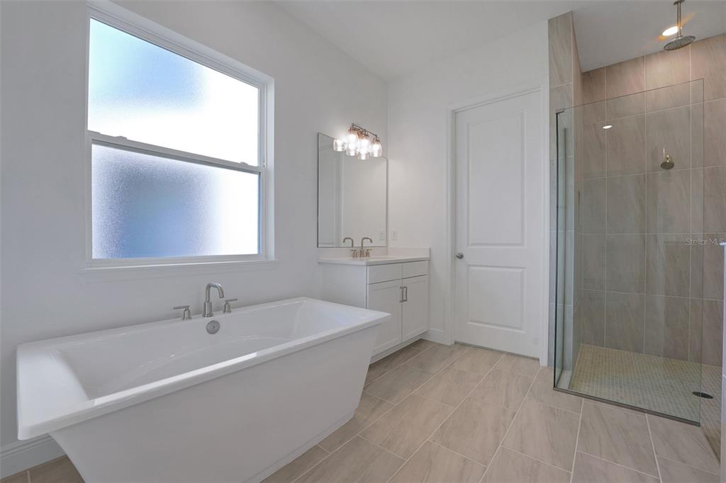 One or more photo(s) has been virtually staged. *Images shown are for illustrative purposes only* TIDEWATER W/BONUS - Our beautiful huge 2 story home, located on a beautiful conservation lot, with 6 Bedrooms and 4.5Baths. This great floor plan boasts an open concept family/dining/kitchen area with a gourmet kitchen, extended 42 wrap around cabinets, and an extended island. The owner's bath also contains a spa package with upgraded 3/8 glass enclosure, an additional rainfall shower head, and wall niche. 9' hidden sliding glass doors and a covered lanai. Downstairs flex room works well as an office or study with 2 additional bedrooms and a laundry room. Common areas upstairs include a spacious bonus room and a 6th bedroom with full bath