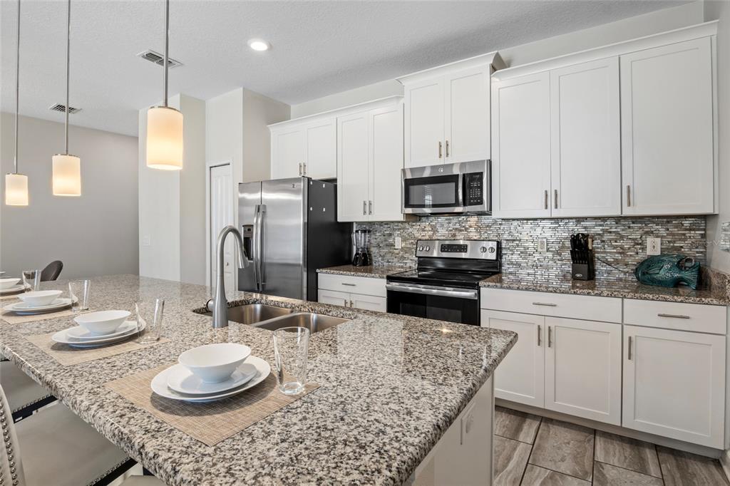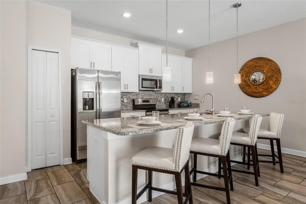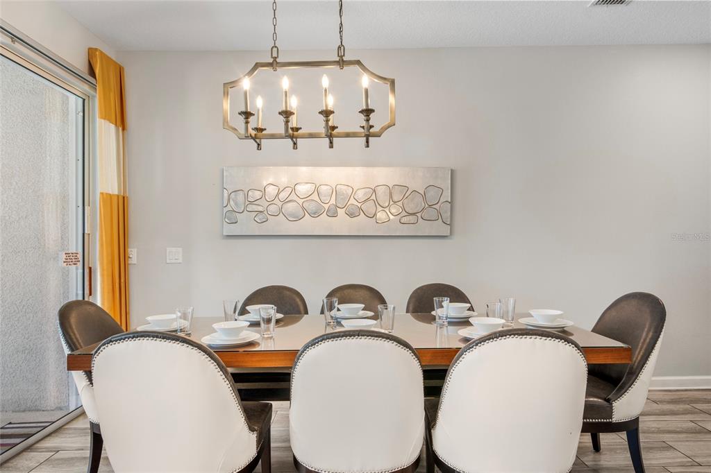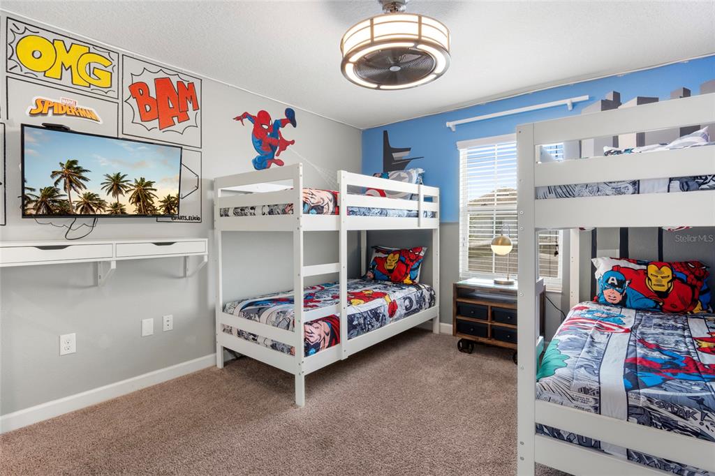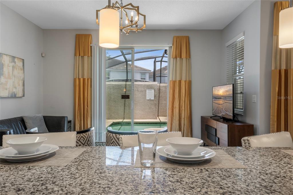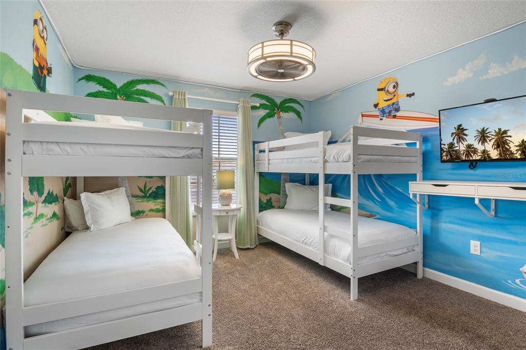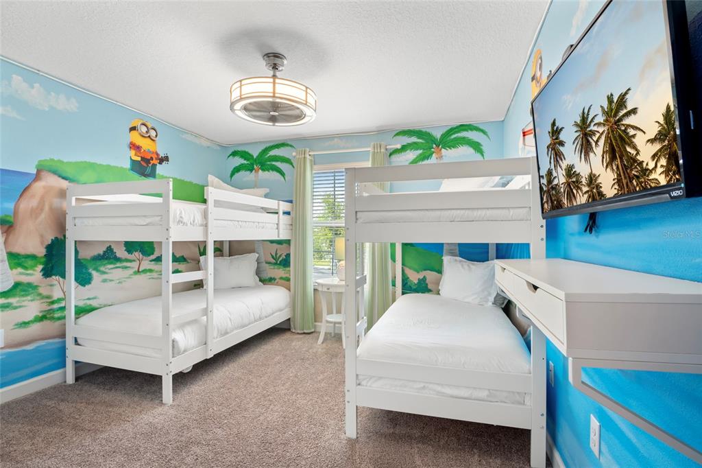 Welcome to your dream vacation rental in the heart of Champions Gate’s most sought-after community—The Retreat. This fully furnished 4-bedroom, 3-bathroom townhome is not only packed with upgrades and style, but it's also just 20 minutes from the magic of Walt Disney World, making it a favorite among travelers from around the world. The open-concept layout features a modern kitchen with granite countertops, stainless steel appliances, and a large island perfect for prepping meals or gathering with guests. The dining area comfortably seats eight, and the spacious living room opens directly to a private, screened-in pool and patio—ideal for relaxing, dining outdoors, or enjoying the Florida sunshine. A bedroom and full bathroom on the first floor provide added flexibility, while upstairs you’ll find two themed bedrooms—one inspired by the Minions and the other by the Avengers—both outfitted with bunk beds and designed to impress. The primary suite offers its own ensuite bathroom, and each bedroom is equipped with a TV for added comfort and entertainment. Located in a secure, guard-gated golf course community, this property includes access to the Oasis Club, offering resort-style amenities such as a large pool, splash pad, spa, fitness center, game room, movie theatre, tennis courts, and on-site dining. The community features beautifully maintained landscaping, walkable sidewalks, and plenty of parking for guests. All furnishings convey with the sale, and the property has a strong history as a vacation rental with solid bookings in place through the remainder of 2025. Rental reports for the past four years are available upon request. Whether you're seeking a high-performing investment property or a fully equipped vacation retreat, this home checks all the boxes. Call for a tour today!