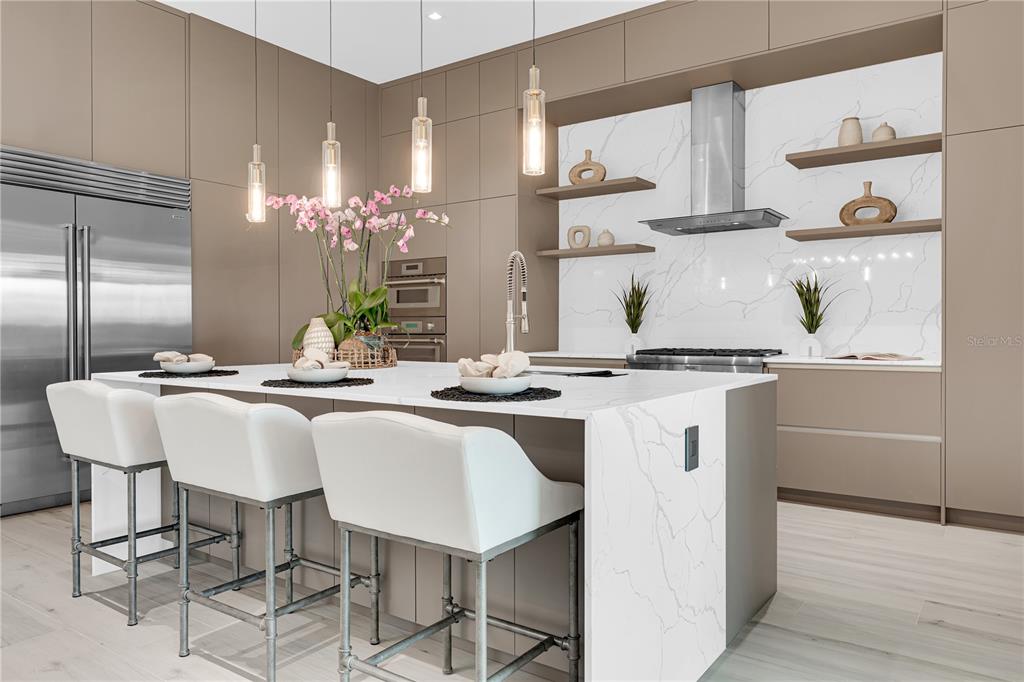 Seller is Motivated and open to negotiate! Luxury new construction lakefront home in Windermere, newly completed. Situated on Lake Bessie, this modern custom residence delivers architectural elegance, premium finishes, and a prime location just steps from the Town Center. The home offers 3,136 sq ft of air-conditioned space, featuring 4 en-suite bedrooms, a dedicated office at the entry, 5 full bathrooms, an outdoor shower, and an oversized 3-car garage. A dramatic two-story living area sets the tone with clean lines, expansive glass, and natural light throughout. The chef’s kitchen pairs performance and elegance, with a waterfall-edge quartz island, full-height book-matched backsplash, custom cabinetry, and high-end appliances including a Sub-Zero refrigerator, Wolf vent hood, and a full Thermador suite with double ovens and microwave drawer. A hidden walk-in pantry blends seamlessly into the design for added utility and clean aesthetics.Upstairs, the owner’s suite offers lake views, a spacious layout, and a sleek en-suite bath with a large walk-in shower and dual vanity. Secondary bedrooms include en-suite baths and reach-in closets. The home is finished with oversized rectangular porcelain tile throughout the entire main level including the expansive covered lanai and wide plank engineered wood flooring from the staircase through the second floor. Additional highlights include a glass-framed staircase and an abundance of natural light in every space. Located just blocks from Downtown Windermere, this home places you at the center of a highly coveted lakefront lifestyle. Enjoy tennis courts, playgrounds, boat ramps on both Lake Bessie and the Butler Chain, plus a vibrant local culture with weekly farmers markets, food truck nights, and seasonal events in Town Square. Cruise oak-lined sandy streets by golf cart, or explore nearby dining, shops, and fitness at The Grove and along Restaurant Row. World-class golf, theme parks, and the airport are all within easy reach and with the hard work already done, all that’s left is to move in and enjoy. Private showings by appointment only. Seller is Motivated and open to negotiate! We completed the closets upgrades in this beautiful home, thoughtfully designed for the family who will soon call this place home.