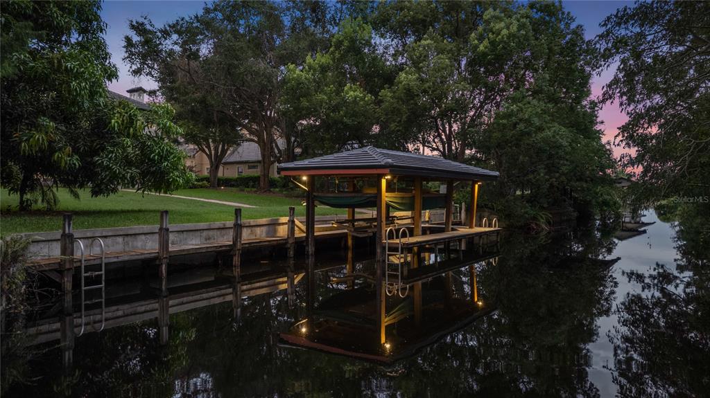 Introducing a rare opportunity to own a truly exceptional residence in the guard-gated enclave of Turtle Creek, one of Orlando’s most coveted luxury communities. This breathtaking estate has been fully remodeled in 2024 and also features a brand new tile roof and fully resurfaced pool. Boasting over 5,800 square feet of meticulously curated living space, 5 spacious bedrooms, 5.5 designer bathrooms, and direct access to the famed Butler Chain of Lakes. Step through the stately double doors and into a grand foyer where the interior unfolds with two-story ceilings, expansive living spaces, and sleek porcelain tile flooring that flows seamlessly throughout the entire home. The heart of the home is a show-stopping chef’s kitchen designed to impress. Outfitted with custom cabinetry, quartz countertops, high-end Thermador appliances, and an oversized island with waterfall edges, it is truly the chef enthusiast's dream. The kitchen flows effortlessly into an expansive family room featuring a stylish electric fireplace, a full wet bar with a wine fridge, and tons of windows with views of the canal and backyard. The first-floor primary suite is a true private retreat. Generously sized and elegantly appointed, it features a sitting area with water views, a large walk-in closet, and a spa-inspired bathroom complete with a freestanding soaking tub, oversized walk-in shower, and dual vanities adorned with designer finishes. Upstairs, additional guest bedrooms are well-appointed, each offering ample space, natural light, and beautifully renovated bathrooms with modern touches. Additional upstairs amenities include a versatile living area, a dedicated office, and a gym. Step outside into your own private resort. The newly resurfaced pool is framed by a spacious screened-in patio and covered lanai, ideal for lounging, dining, and entertaining. Beyond the pool lies the crown jewel of the property: your private boat dock nestled along a tranquil canal with direct access to the Butler Chain of Lakes. As a part of the Turtle Creek community, residents enjoy 24-hour guard gated security, tennis courts, a playground, and a serene setting just minutes from renowned dining on Restaurant Row, world-class shopping, championship golf courses, and Orlando’s most elite private schools. Don’t miss the opportunity to make this amazing fully remodeled home yours.