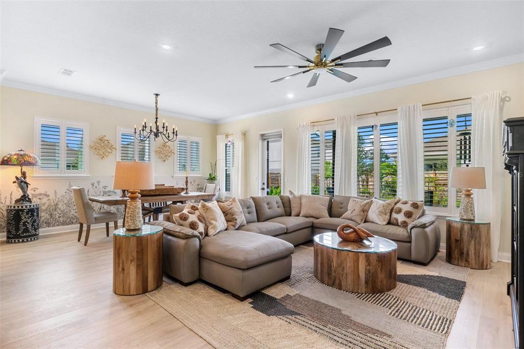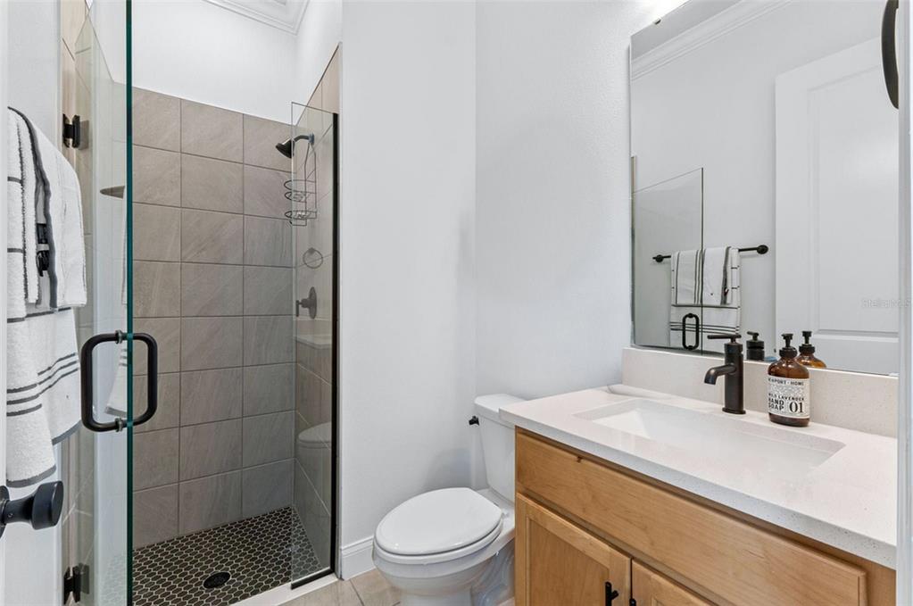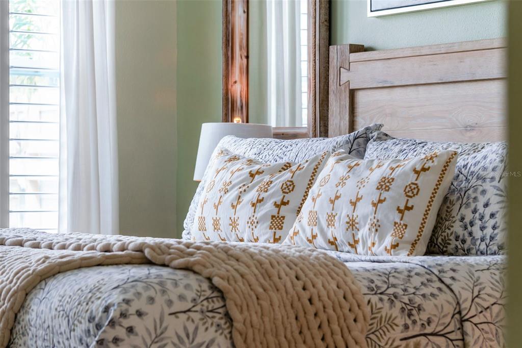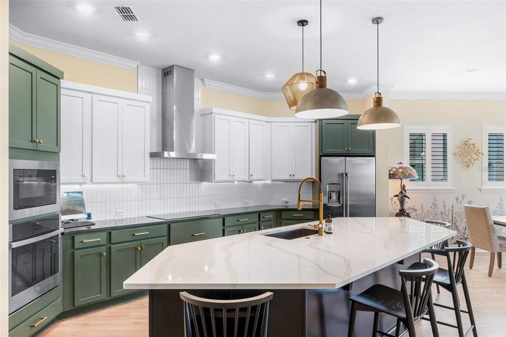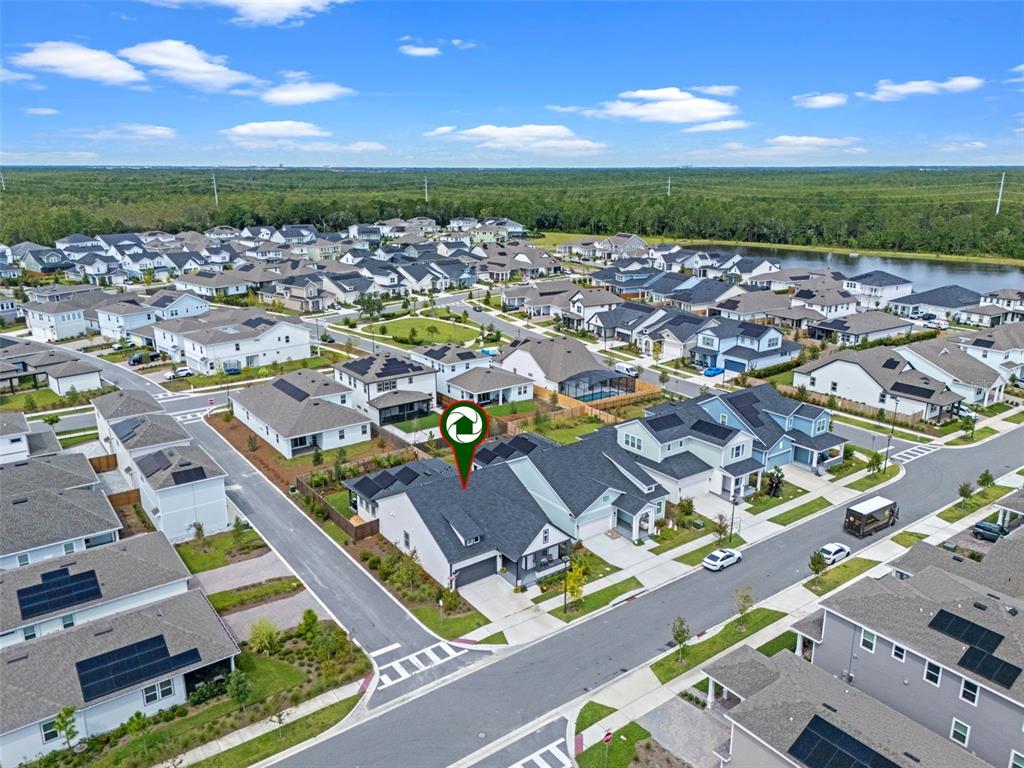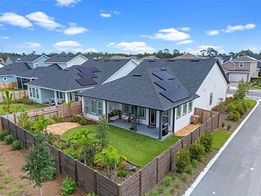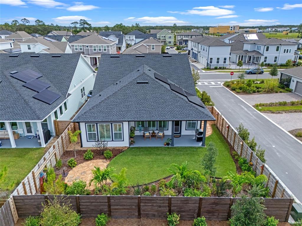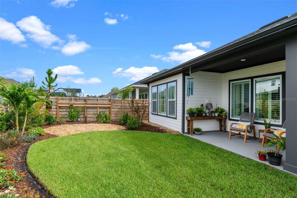 One or more photo(s) has been virtually staged. *** Spacious One-Story Gem *** Welcome to the Whimsical by David Weekley Homes, a beautifully crafted one-story residence on a desirable CORNER homesite in the sought-after Weslyn Park community of Sunbridge. Featuring 4 bedrooms, 3 bathrooms, and just under 2,500 square feet of open living space, this home combines modern luxury with thoughtful upgrades and opportunities to own this floor plan are rare until the next community phase is released. Inside, you’ll immediately notice the gorgeous luxury laminate flooring that flows throughout the entire home with no carpet anywhere. The open-concept design showcases a gourmet kitchen with quartz countertops, a spacious island, two-tone cabinetry, designer pendant lighting, and stainless steel appliances. Plantation shutters add timeless elegance while natural light enhances every room. A beautiful study with glass French doors provides an additional space perfect for a home office, library, or lounge. The primary suite is a serene retreat with an oversized walk-in shower, dual vanities, and a generous walk-in closet. Three additional bedrooms and two full baths provide flexibility for family, guests, or hobbies with one of the bedrooms featuring its own en-suite bath. Outdoors, the sellers have transformed the backyard into a private retreat with a custom wooden fence, elevated landscaping, and a stepping-stone paver area, ideal for entertaining or relaxing. The home is also equipped with completely PAID OFF solar panels that significantly reduce electricity costs, a pristine garage with epoxy flooring, and front drains and gutters for peace of mind. Living in Weslyn Park means enjoying scenic trails, neighborhood parks, and all that Sunbridge has to offer while being just minutes from Lake Nona’s vibrant shopping, dining, top-rated K-8 neighborhood school within walking distance, and Orlando International Airport. This Whimsical plan is move-in ready, brimming with upgrades, and will not be offered again by the builder until future phases which makes it a rare opportunity you do not want to miss. Schedule your private showing today and experience the lifestyle of Weslyn Park at Sunbridge.