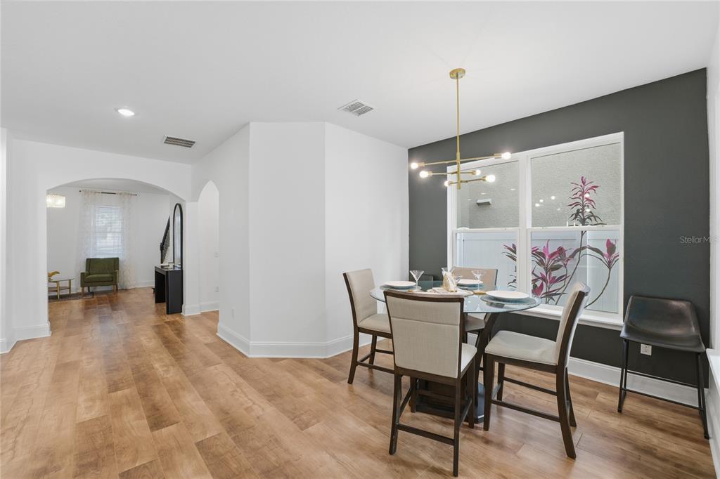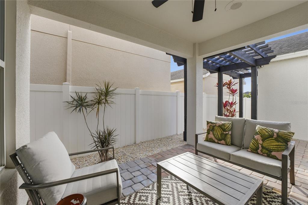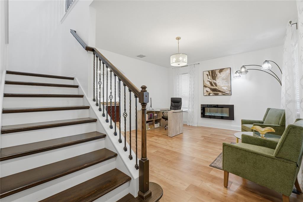 Ideally situated within WINDERMERE LANDINGS and in close proximity to highly rated schools, convenience stores, restaurants, golf courses & other amenities, this IMMACULATELY presented 3 bedroom and 2.5 bath property with 2 car garage and private driveway is a true GEM with its stunning curb appeal and TURNKEY presentation! On approach the front porch feels inviting with its welcoming entryway and foyer area that leads into a versatile living room with contemporary FIREPLACE. At the heart of the home is the expansive OPEN PLAN CONCEPT kitchen and family room with plenty of natural light which flows into an informal sunlit breakfast/dining nook. Enjoy cooking and entertaining in the GOURMET KITCHEN which is a chef’s dream with its ample cabinetry, central island, granite countertops, stainless steel appliances, tile backsplash, high-top countertop seating and recently upgraded fixtures including a touchless faucet. The first floor has a separate guest powder half bath serving the living room areas. All bedrooms, loft and laundry room are located on the second level. Upstairs the spacious LOFT is a FLEX SPACE which can be retained as a study or games area or indeed can be converted into a 4th bedroom. The primary bedroom is a well-appointed, true retreat with views of the nightly Disney fireworks and boasts UPGRADED walk-in closet and ensuite bathroom consisting of separate vanities and walk-in shower with new fittings. Each of the other two bedrooms are well-proportioned with generous & recently upgraded closet spaces and adjacent to a full bathroom. A conveniently located laundry room with digital combo washer and dryer completes the second floor. Home has NO CARPETS and features designer light fixtures, plenty of storage closets on both floors, windows adorned with drapes & blinds and new water heater. A further highlight is an an in-built surround sound system to create ambiance in both the home and the patio area! Seamlessly blending the outdoor with the indoor, enjoy Florida lifestyle living either lounging under the shade of the covered patio area or out on the fully enclosed/fenced in PAVED COURTYARD with focal point PERGOLA. An added benefit with this property is the ULTRA-LOW MAINTENANCE LANDSCAPING ! Windermere Landings has a community pool, cabana house, playground, dog park and a green space kick ball area. Easy access to major highways/roads, local shopping malls and entertainment as well as the theme parks and Orlando International Airport. All furniture is available but separately negotiated. Don’t miss out, book your private showing today!
