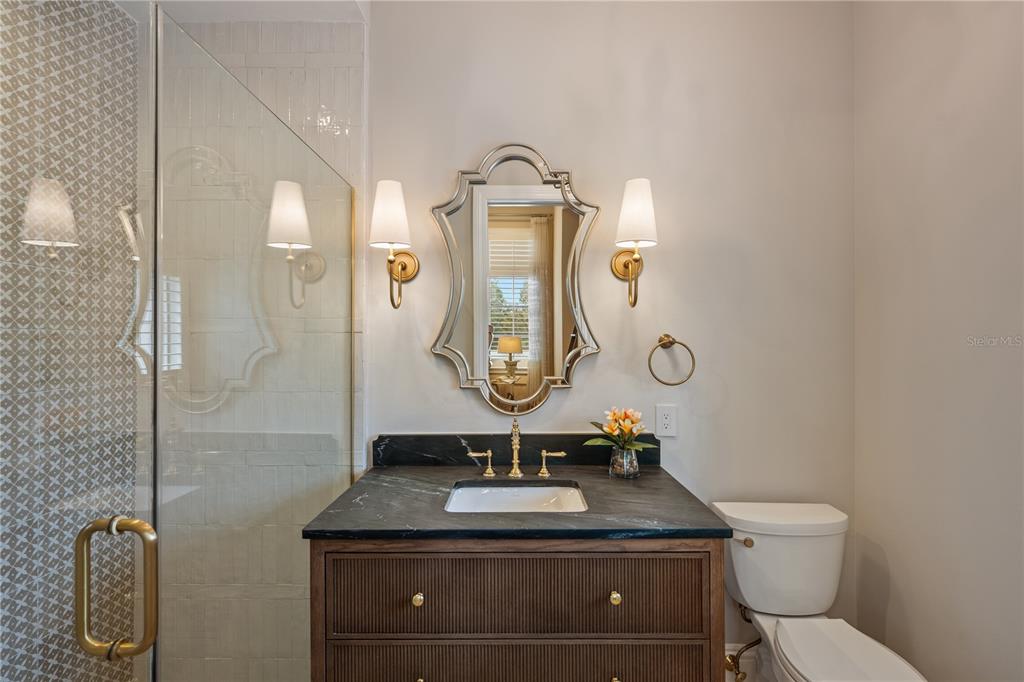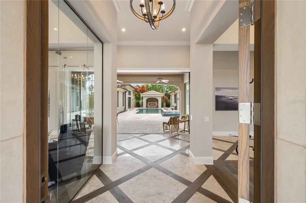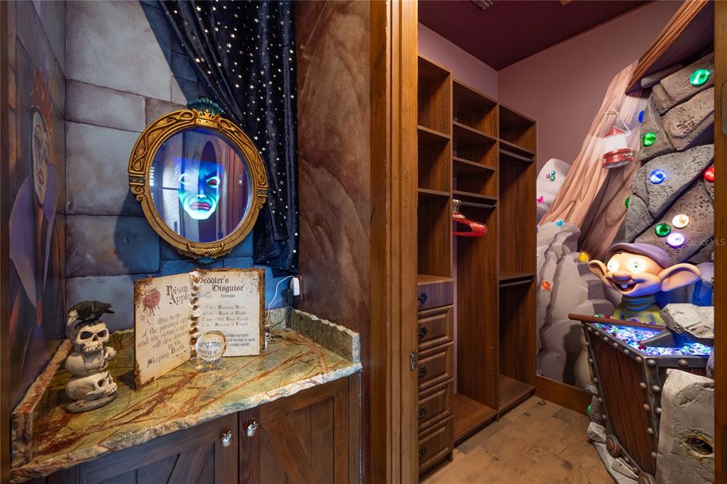 Tucked away on a private cul-de-sac within the ultra-exclusive gates of Golden Oak at Walt Disney World® Resort, this rare single-story estate was originally built by renowned luxury builder Jones Clayton and recently reimagined to feel like a brand-new custom home, never lived in since its transformation. An elegant façade, meticulously manicured grounds, and arched entry create a striking first impression, while uninterrupted sightlines lead to a resort-style outdoor retreat designed for seamless indoor-outdoor living. Inside, elevated finishes and bespoke details define the space. The chef’s kitchen serves as the centerpiece of the home, appointed with top-tier Miele and Sub-Zero appliances, Taj Mahal quartzite countertops, an expansive statement island, custom cabinetry, and an oversized walk-in pantry designed for both everyday living and elevated entertaining. A hidden Mickey mosaic tile feature adds a subtle nod to the magic of Golden Oak. The kitchen opens to a grand living room with vaulted ceilings, wood beams, and abundant natural light. The primary wing is a true statement featuring a separate sitting room, oversized windows overlooking the pool, and an atmosphere of quiet retreat. The spa-inspired primary bath is expansive and indulgent, complete with a freestanding soaking tub, an oversized walk-in shower, dual vanities, and something that is exceptionally rare within the community, two large, custom walk-in closets designed to rival boutique dressing rooms. All bedrooms are ensuite, including a whimsical Seven Dwarfs-themed guest casita that your guests are sure to love. Outdoors, enjoy a covered lanai with summer kitchen, a resort-style pool and spa, and a detached pavilion with fireplace and water feature. With no left-side neighbor, a three-car garage, mosquito misting system, and even a replica of Walt Disney’s personal office, this home delivers privacy and distinction. Golden Oak residents enjoy access to the private Summerhouse clubhouse and preferred privileges at Four Seasons Resort Orlando, which features an 18-hole Tom Fazio-designed championship golf course, full-service luxury spa, and an extraordinary collection of fine dining experiences, creating a living experience that is as exceptional and refined as the home itself.