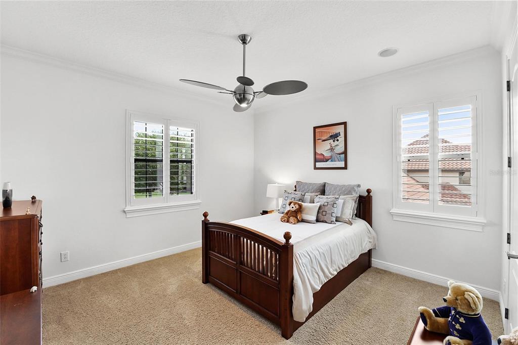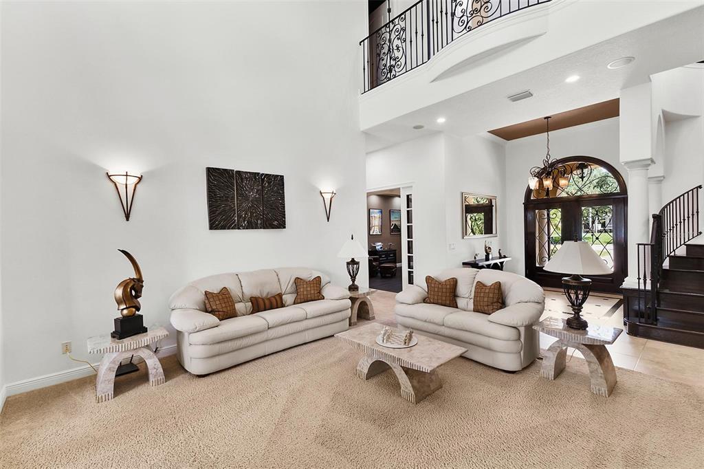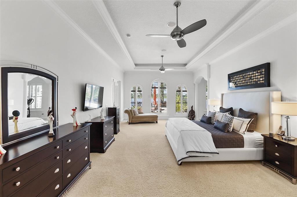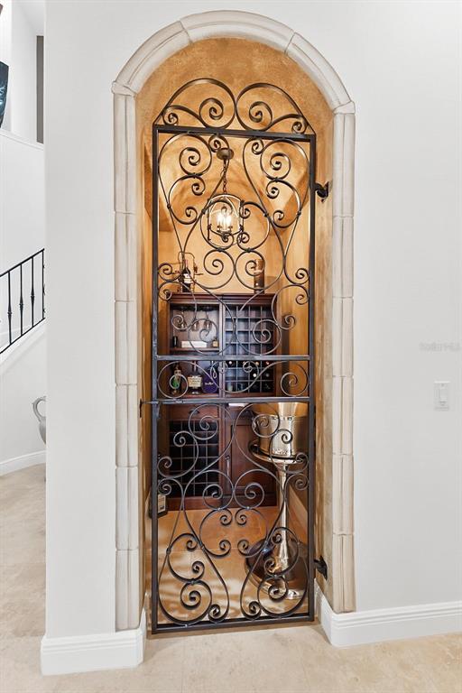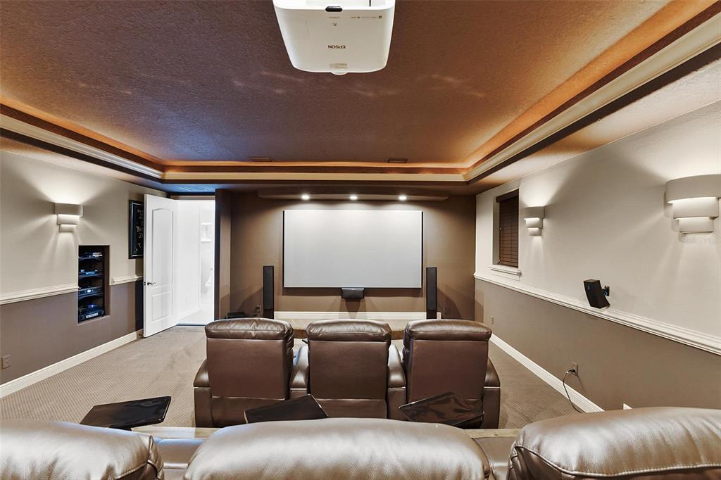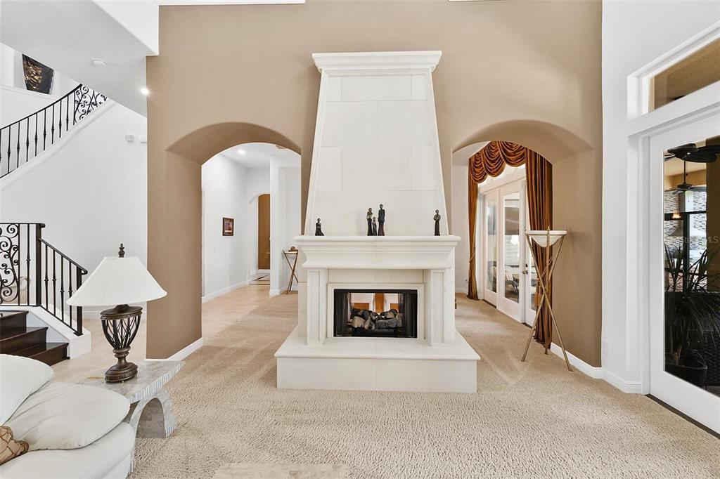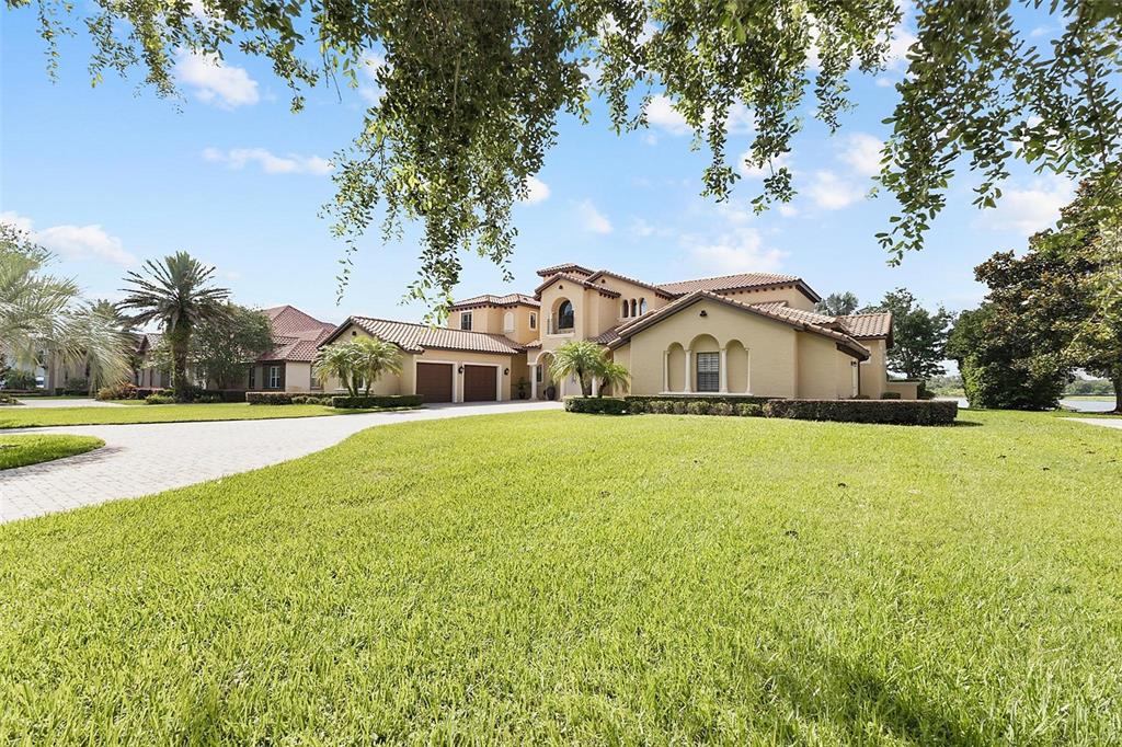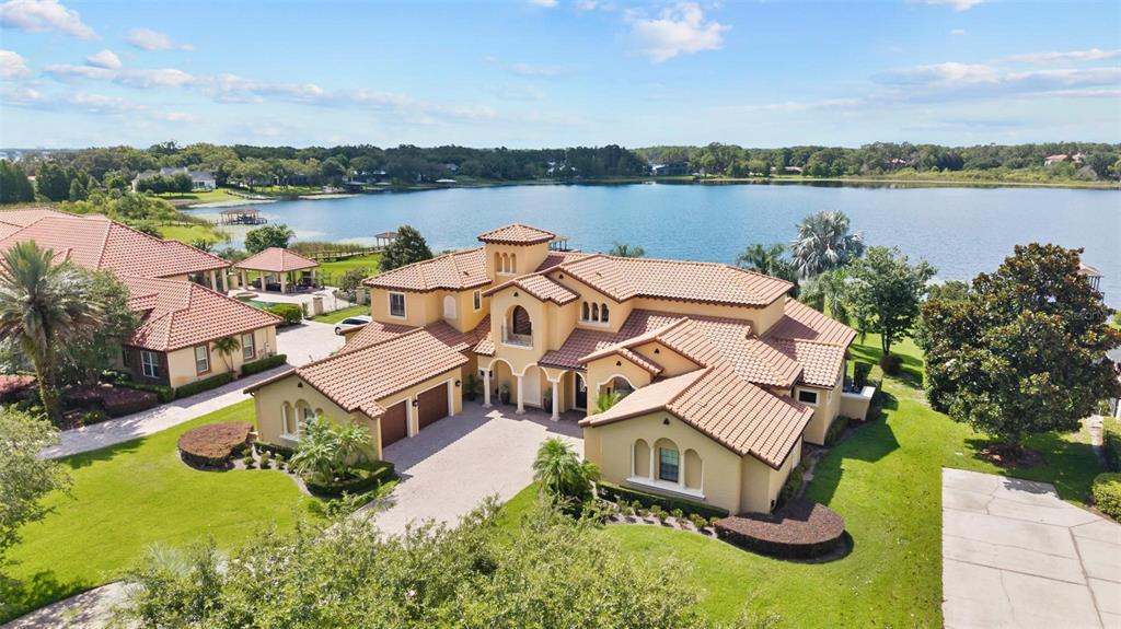 Experience Unmatched Lakeside Luxury in a Custom-Built Masterpiece Discover the pinnacle of elegance and tranquility in this exquisite custom-built estate, ideally positioned on an expansive lot within an exclusive guard-gated community. With direct access to a crystal-clear spring-fed lake that permits private boat docks, this home offers a rare blend of relaxation, recreation, and refined living. Step inside to a beautifully designed open-concept living space where the family room and gourmet kitchen seamlessly connect. The kitchen is a chef’s dream, featuring top-of-the-line appliances, a breakfast bar, an inviting eat-in nook, and a spacious butler’s pantry. A custom wine closet nearby provides a perfect display for your finest vintages. Adjacent to the kitchen, a well-appointed guest suite and a large laundry room enhance the home's convenience. The formal dining and living rooms, centered around a cozy shared fireplace, has stunning views of the lake—creating a warm and relaxed setting for entertaining. The first floor also features a private office, a full pool bathroom, and a luxurious primary suite. This expansive retreat includes a dedicated exercise room, while the spa-inspired en-suite bath boasts double vanities, dual walk-in closets, a garden tub, and a walk-through shower. A beautifully crafted wood and iron staircase leads to the second floor, where you'll find two spacious bedrooms, each with its own private bathroom. The expansive game room opens to a lake-view balcony, perfect for taking in serene sunsets. Movie nights are elevated in the state-of-the-art home theater, complemented by a convenient half bath. Step outside to your own private paradise—an entertainer’s dream. The large covered lanai includes a fireplace and a fully equipped summer kitchen. A sparkling pool and spa, along with a generous open patio, set the stage for unforgettable gatherings or peaceful evenings under the stars—complete with views of the nightly fireworks. Rounding out this extraordinary residence is a three-car garage, offering ample room for vehicles and recreational equipment. This is more than a home—it’s a lifestyle. Luxury, privacy, and breathtaking views await. Schedule your private tour today and experience the ultimate in lakeside living.