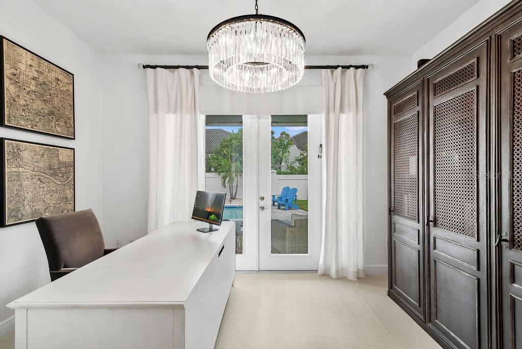Pristine elegance meets modern sophistication in this exceptional residence, perfectly situated in the highly desirable Parkside community in the heart of Dr. Phillips. From the moment you step through the grand double doors, you’re welcomed by gleaming travertine floors, soaring ceilings, and an abundance of natural light that creates an immediate sense of luxury and warmth. Spanning over 5,400 sq ft across two levels, this home offers 7 bedrooms, 6.5 bathrooms, and a resort-style pool on a generous quarter-acre lot. The first floor showcases an open-concept design, seamlessly connecting the formal dining and living areas with an extended chef’s kitchen — featuring an oversized island, custom cabinetry, and a walk-in pantry designed for both beauty and function. The primary suite on the main level is a true retreat, complete with a spa-like bath, expansive walk-in closet, and a charming sitting room with French doors overlooking the pool. A home office, flexible enough to be used as a guest suite, and a convenient laundry room complete the main floor. Upstairs, the glamour continues with a spacious loft with wet bar and beverage fridge, perfect for movie nights or game evenings. Five additional bedrooms include a second master suite, two en suite bedrooms, and a Jack & Jill configuration — each boasting spacious walk-in closets. A second laundry room provides ease and convenience for the entire household. Step outside to your private oasis: a sparkling pool and spa, a fully equipped summer kitchen, and abundant privacy — all designed for relaxation and entertainment. A dedicated pool bath ensures comfort for family and guests alike. The location is simply unmatched: minutes from world-class dining, shopping, theme parks, and major highways, this home offers the perfect balance of convenience and exclusivity. Meticulously maintained and featuring one of the most desirable floor plans in Parkside, this residence feels like new — elegant, pristine, and truly one of a kind. From the first step inside, you will fall in love.