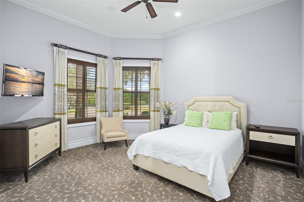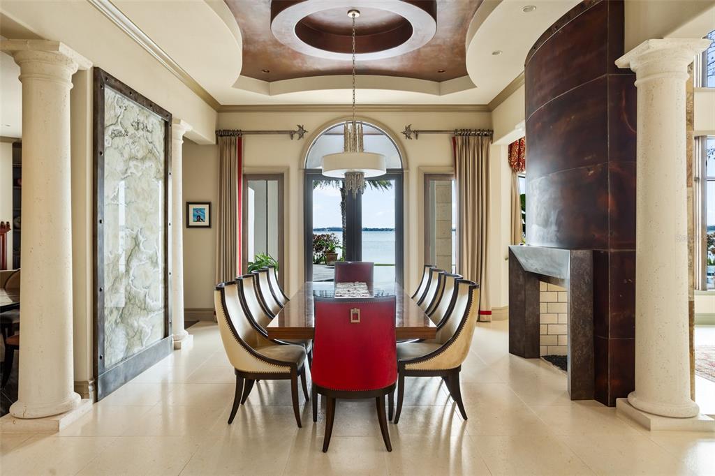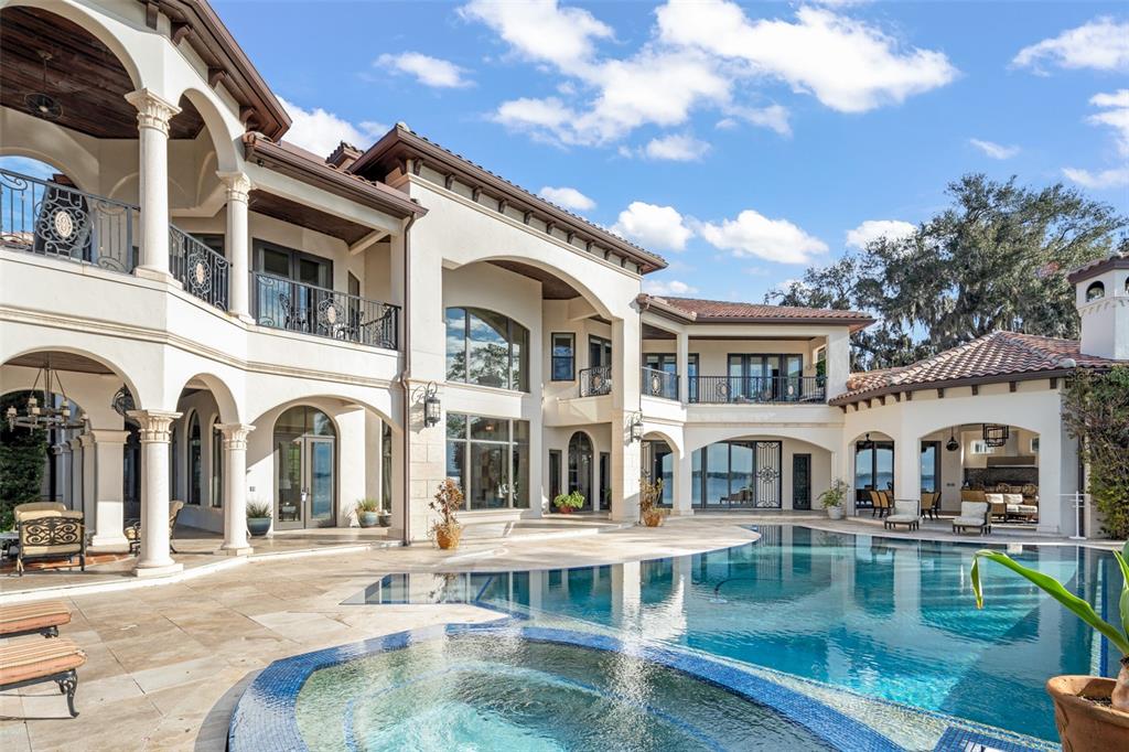 Presenting Sunset Isle: an iconic waterfront estate compound capturing timeless elegance on Windermere’s largest and most prestigious Lake Butler, offering captivating unobstructed views from its 700 feet of lake frontage, a private island with moat and drawbridge, sandy beaches, two story double residence guest house, and a majestic and stunning grand mansion with additional guest retreat, all spanning more than 14,444 square feet of living space and 11 bedrooms across both residences. Welcome to this one-of-a-kind haven of privacy and prominence showcasing the best of Central Florida living. Set on a rare 3.75 acres commanding enviable views on the northern shore of Lake Butler, every detail has been thoughtfully designed to celebrate both refinement and tranquility. The impressive palatial main residence boasts 10,649 square feet of living space with 6 bedrooms plus a one-bedroom guest retreat and an array of curated spaces. The Spanish Eclectic interior fuses classic craftsmanship with modern sophistication, creating an inviting and awe-inspiring escape from the ordinary. On entrance be greeted by sweeping floor to ceiling windows to allow breathtaking water vistas, double-sided gas fireplace, a grand colonnade hallway, and architectural details throughout. The gourmet chef’s kitchen features top of the line appliances, gas range with multiple burners, ovens, island with second sink, and walk-in pantry. A sports bar games room and showstopping home theater provide an abundance of entertaining options. Other notable amenities include a Castilian wine cellar, bay windows, two wet bars, private salon, elevator, gym, steam room and sauna. Outdoors, a generous summer kitchen with automatic roller screens provide an outdoor oasis for al fresco dining, cooking, or relaxing. The zero-entry infinity pool and vast resort decking provide a breathtaking vantage point for panoramic views of Lake Butler’s radiant sunsets, while the shaded Zen garden and white sandy beach offer a tranquil retreat for quiet reflection. With many distinct outdoor venues, serenity is never far away. The estate’s private island, accessed by an electric drawbridge, and a boat ramp provide unmatched exclusivity to Lake Butler and the world-famous Butler Chain of Lakes. The two-story detached guest house offers 3,795 sq feet of living space across two, 2-bedroom apartment homes, each with kitchens, laundry rooms, an elevator, and attached two-car garage. Built for a large multi-generational family, guest quarters, or on-site caretakers, the possibilities are endless. Truly a picture-perfect unmistakable showplace offering the very best for the most discriminating buyer.