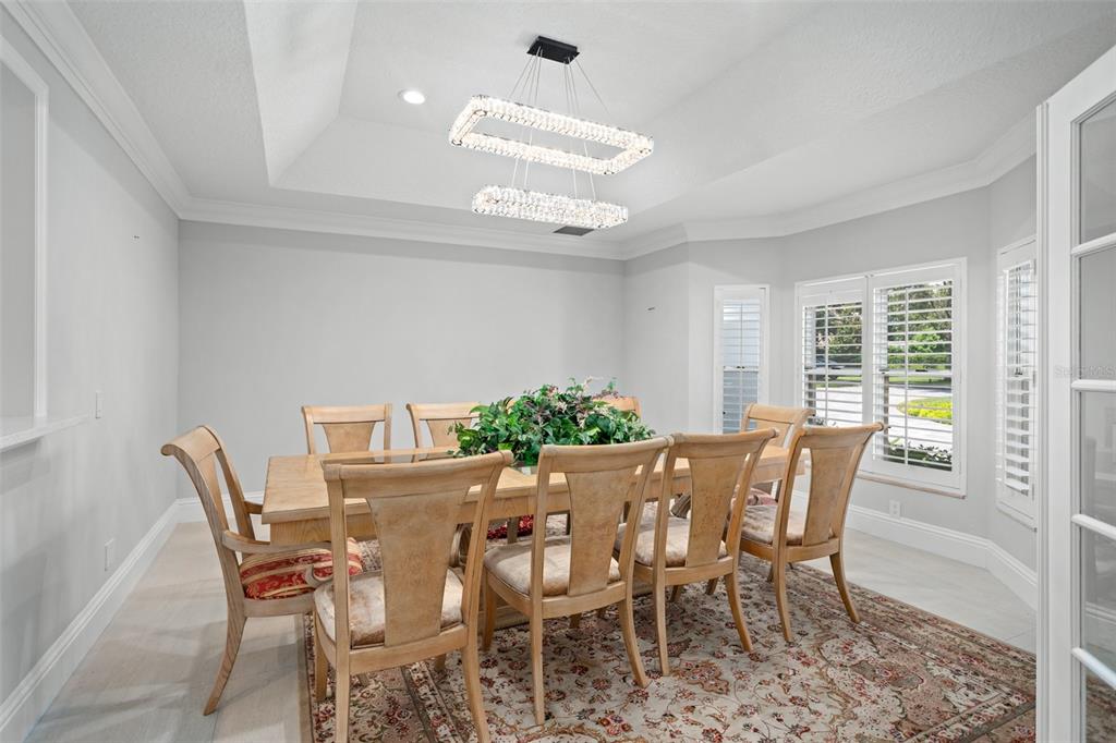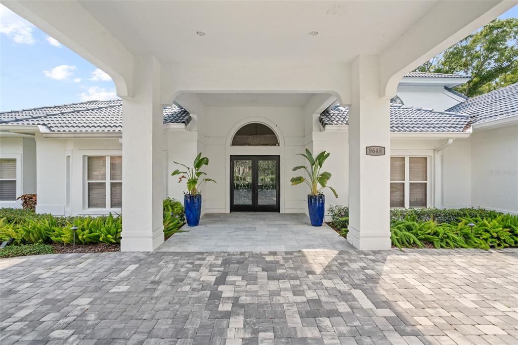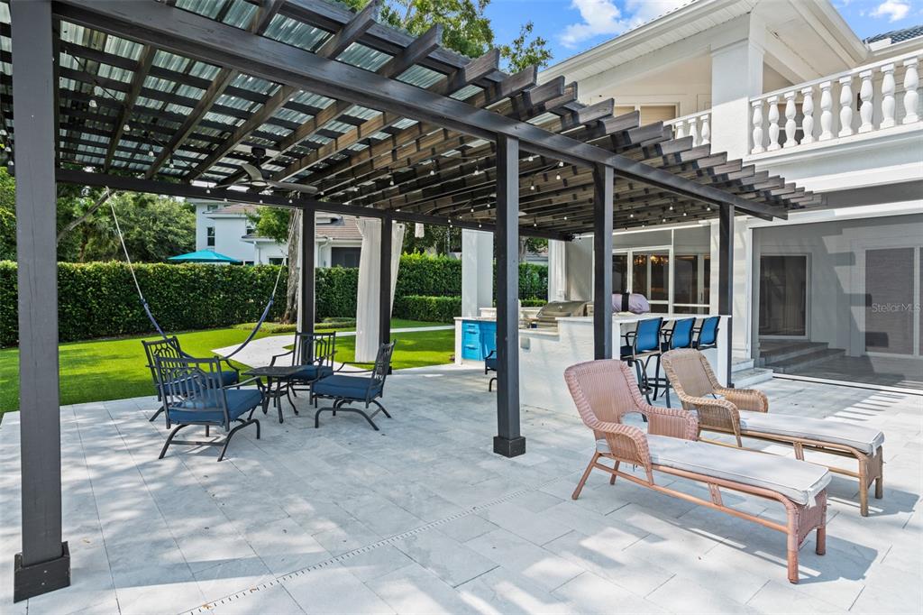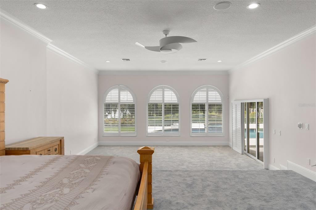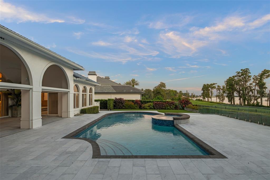 Stunning golf and lake views and beautifully updated grounds are hallmarks of this elegant Isleworth estate. Nestled along the front nine overlooking Isleworth’s 2nd fairway and beautiful Lake Chase, this two-story home spans more than 4,800 square feet and features modern finishes throughout. Beautiful porcelain tile travels throughout the main level from the spacious living room with an oversized modern built-in featuring slate stonework and lit shelves. The spacious master suite features a large sitting area and an en-suite bathroom with dual vanities, a walk-in closet, modern soaking tub and separate walk-in shower. Completing the main level are the home office, formal dining room, elegant powder bath and center-island kitchen with casual dining area. Two additional bedrooms with balcony access are on the upper level. Step outside and discover a newly reimagined outdoor living experience. The expansive pool deck has been fully updated with sleek new pavers, while fresh turf and lush landscaping create a vibrant backdrop for relaxation and entertaining. A striking glass wall encases the pool area, maximizing panoramic views of both the golf course and the lake. The outdoor kitchen has been thoughtfully upgraded with new granite, a built-in grill, pizza oven, sink, and designer lighting—seamlessly blending function with style. Enjoy evenings around the modern fire pit, take a dip in the resurfaced pool with its brand-new heater, or unwind in the extended backyard, which offers an additional 15 feet added to one side of the property. Every detail of this outdoor transformation has been designed to enhance both beauty and livability, making this property the perfect retreat for year-round enjoyment.