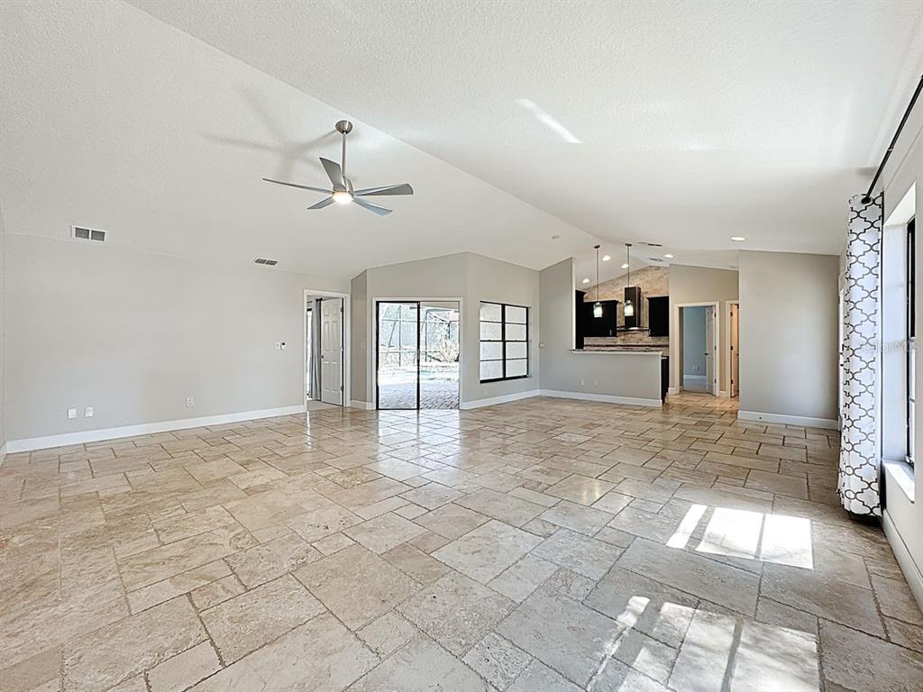 Welcome to your dream pool home! This beautiful 2 Bedroom 2 Bathroom Single Family Pool Home is located in Granada Villas in Dr Phillips and has completely been renovated with New Flooring, New Kitchen, New Bathrooms, New Roof installed in 2025, New Hot Water Heater installed in 2025 and More. Enjoy the Large living room with vaulted ceilings and Travertine Floors, offering plenty of space for entertaining or relaxing. With views of the large front yard and Pool area. Access the amazing backyard from every room. The Backyard features a screened in pool, covered patio and a large fully fenced in Yard. Fully updated Kitchen with cabinets, appliances and granite countertops. The split-bedroom floor plan offers privacy for the primary bedroom suite and guest bedroom both with updated attached Bathrooms and walk in closets. Granada Villas offers amenities and a location that can’t be beat. The HOA provides individual lawn care including cutting, fertilizing, watering, irrigation system maintenance, landscape trimming & tree pruning. The lakeside gated recreation area features 2 tennis courts, and a boat ramp with access to Little Sand Lake. Only minutes away to restaurants, shops, grocery stores, coffee shops, banks Universal Studios, Sea World and Disney World, International Drive. Easy access to the Orlando International Airport, downtown Orlando.
