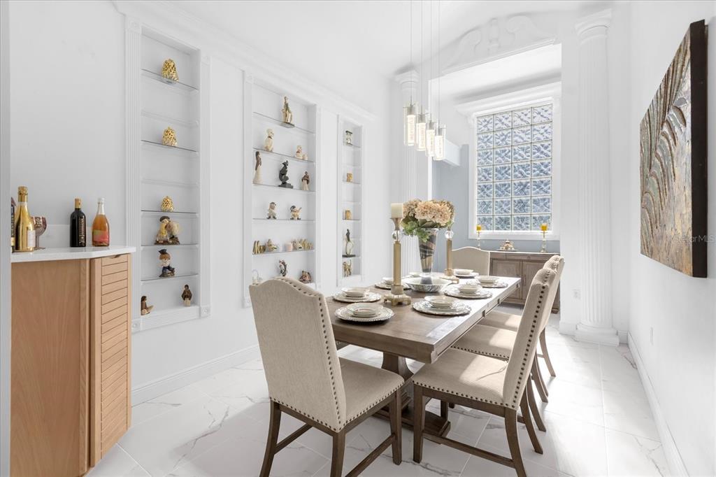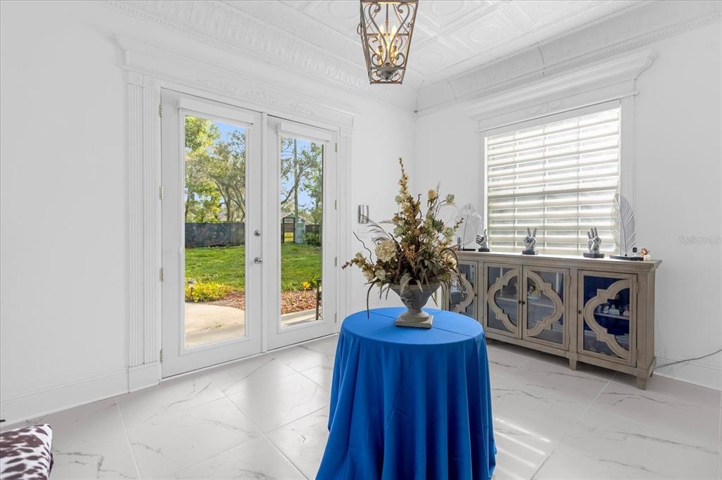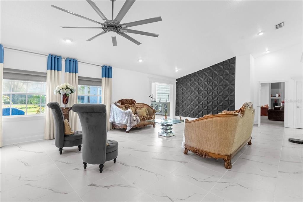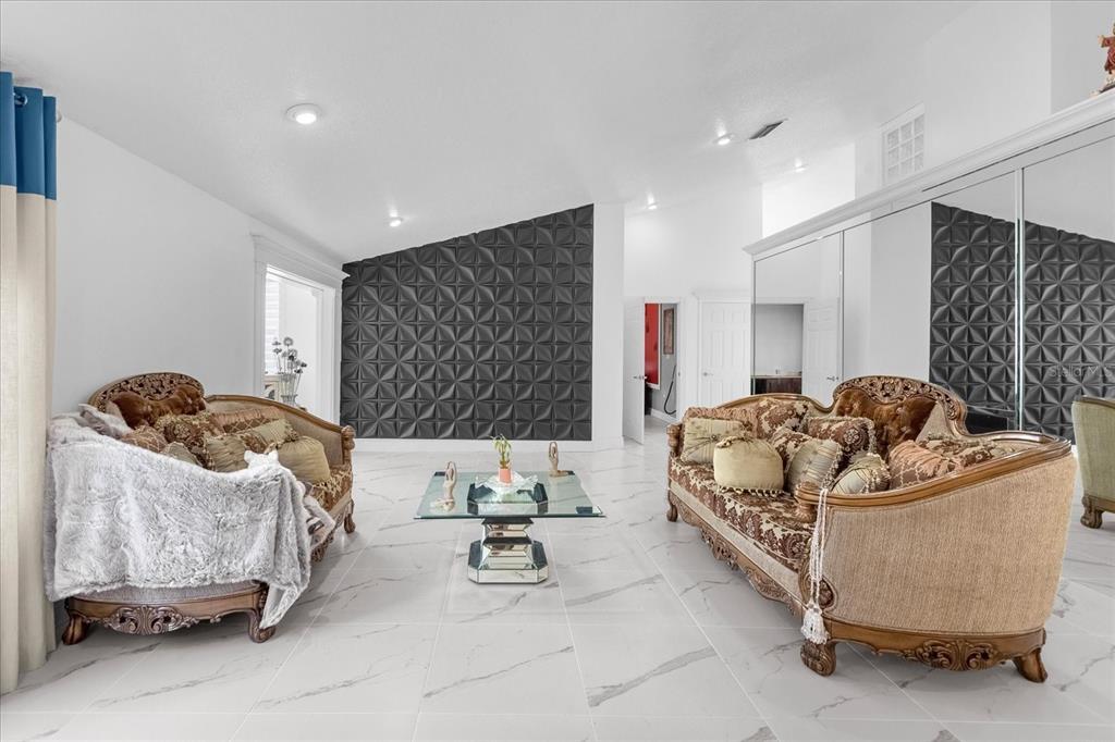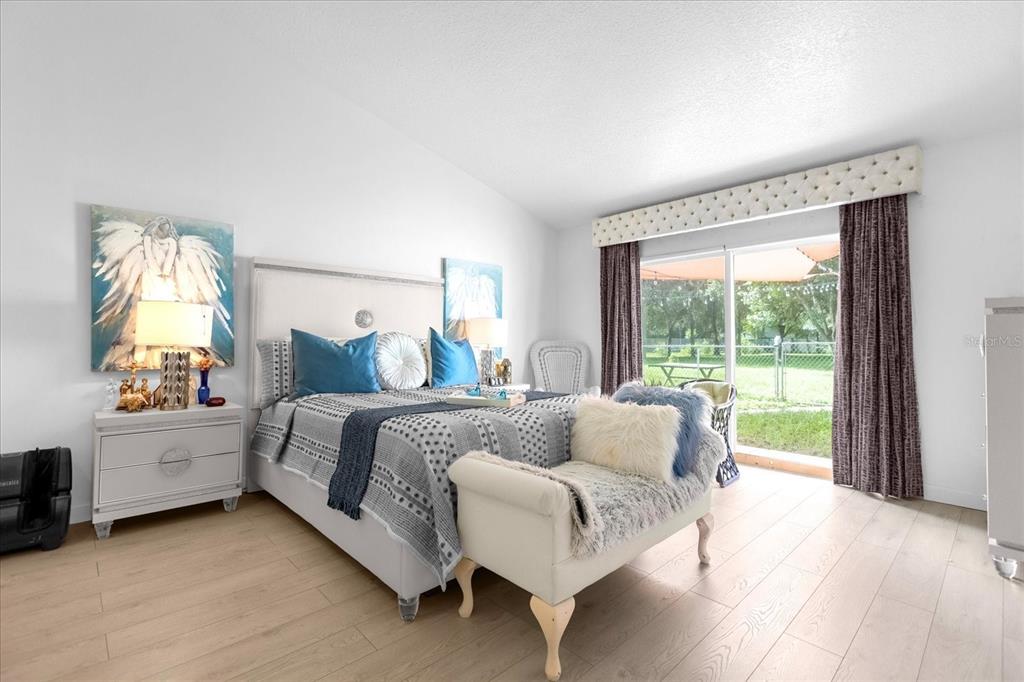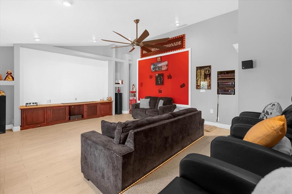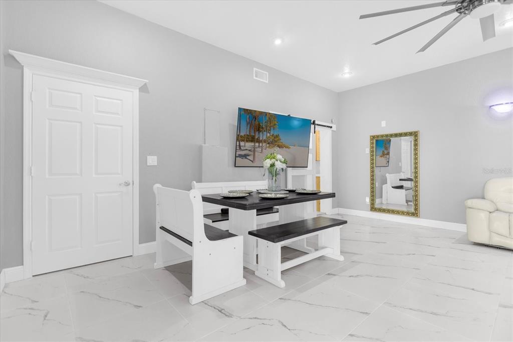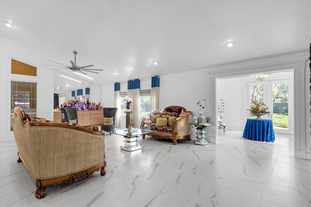Price Just Reduced! One of a kind fully fenced one-acre estate is just minutes from Lake Nona and all Central Florida has to offer. Ideal for car enthusiasts and hobbyist this home features three garages with six bays, a breezeway workspace for additional vehicles, 50-amp upgraded electric service, compressor lines, and a full bath in one garage that can be utilized as an in-law suite or additional bedroom. Inside, enjoy 3 Bedrooms with family room, dinnin groom and family room, with features such high tin ceilings, crown molding,new tile floors, a built-in wet bar, movie/bonus room pre-wired for surround sound, formal dining, and a spacious kitchen with solid wood cabinets and premium appliances.The private master suite offers sliding doors to a seating area, large walk-in closet, and stylish ensuite bath. The lush grounds include pillar lights, a fire pit, a shed with water system, zoned irrigation on a separate well, and mature fruit trees. 2021 Roof , on septic tank and well.