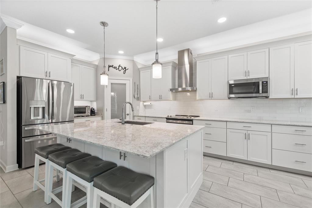 Stop vacationing a few times a year—start living like you’re on one. Welcome to resort life in ChampionsGate at 1457 Olympic Club Blvd, where your mornings can start with coffee at the Oasis Club, your afternoons can be spent at the Retreat water park, and your evenings can end poolside with peaceful conservation views in your own backyard. When you want more, Theme parks, outlets, and world-class dining are close when you want the energy (drive times vary)—but the best part is coming home to your own resort One of the finest homes in ChampionsGate, this 6-bedroom, 4-bath residence is loaded with upgrades and sits on a premium private conservation lot, offering serene views and exceptional privacy. The heart of the home is the fully remodeled kitchen, featuring an oversized island, Cambria quartz countertops, additional custom cabinetry, and built-in dinette and pantry, perfect for entertaining and daily living. The main living area offers an open-concept layout, upgraded lighting, crown molding, and custom finishes throughout. Upstairs, you’ll find luxury vinyl plank flooring, plush new carpet, and a remodeled primary bath suite with a custom-built primary closet. Step outside to your private oasis: a custom saltwater pool with sun shelf, water feature, and professionally designed landscaping with concrete curbing for added elegance and curb appeal. This unique Next-Gen floor plan includes a private in-law suite with a separate entrance, living room, kitchenette, bedroom, full bath, laundry, and its own 1-car garage, ideal for guests or multigenerational living. Additional features: plantation shutters, electric shades, upgraded lighting, and a 3-car garage. Enjoy golf cart access throughout the gated, resort-style community with world-class amenities: Oasis Club with restaurant, tiki bar, lazy river, pools, fitness center & more. The Plaza, a residents-only clubhouse with restaurant, bar, pickleball, and two pools. The Retreat Club, a new full-scale water park. HOA includes: full golf membership, access to all clubs and amenities, tennis, pickleball, $75 monthly food credit, gated entries, lawn care, cable, internet, phone, security monitoring, and more. CDD and trash included in taxes. Minutes to Disney, shopping, and dining—this is resort living at its finest!