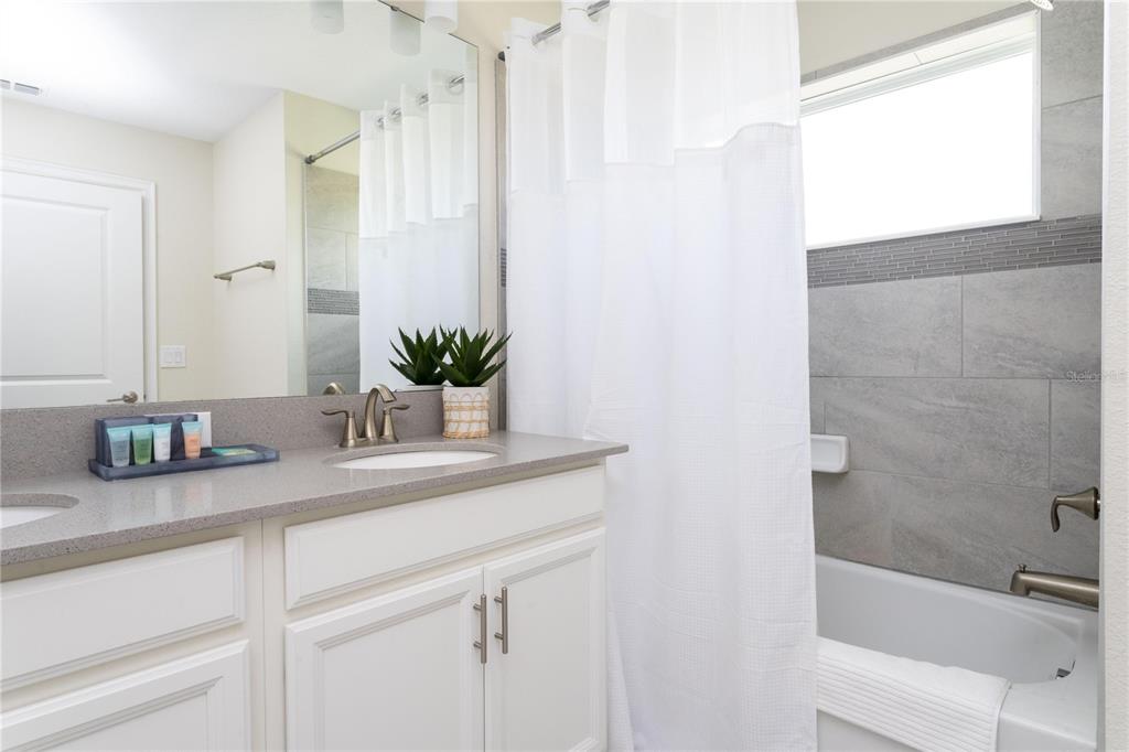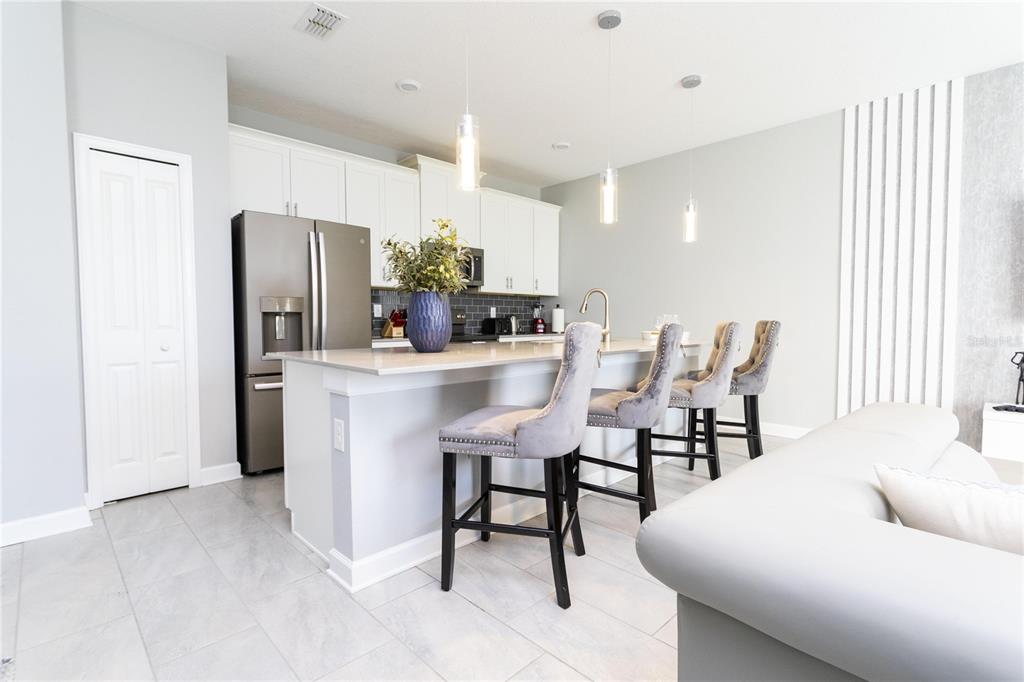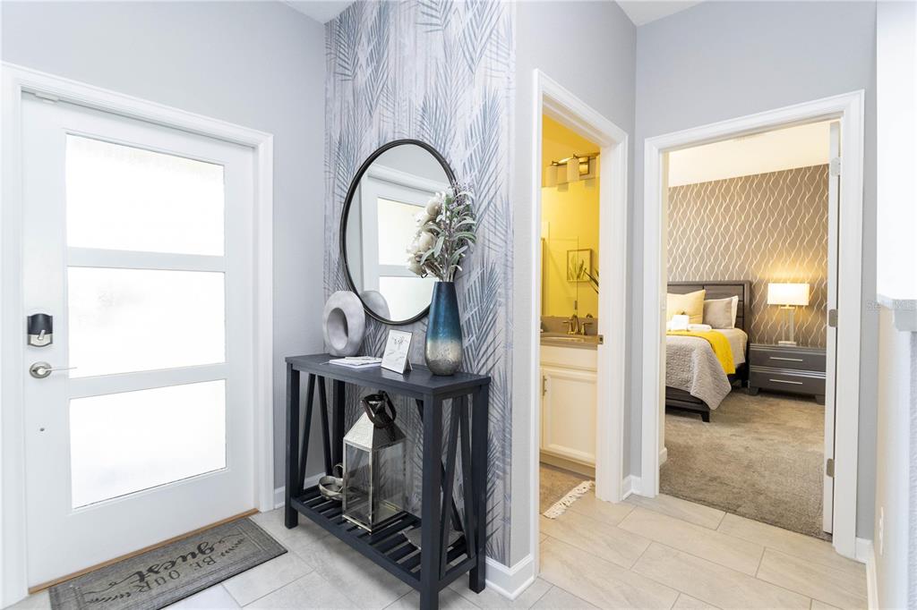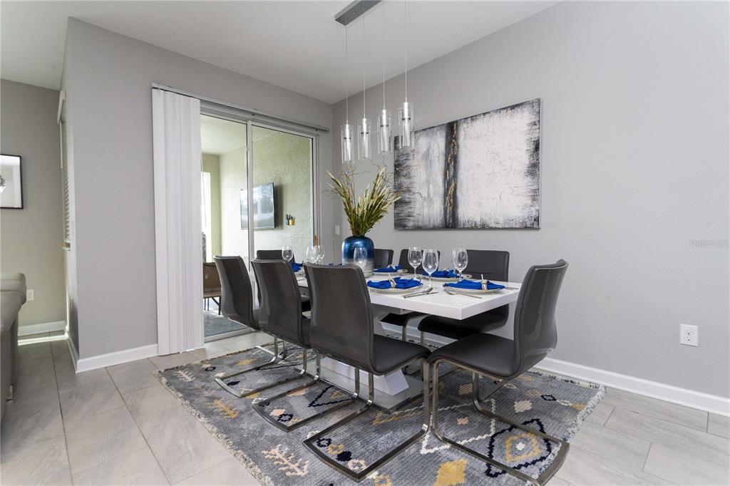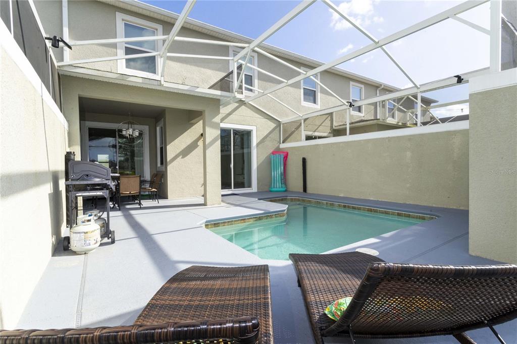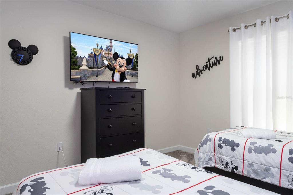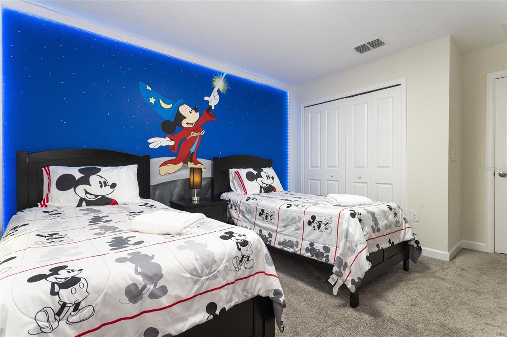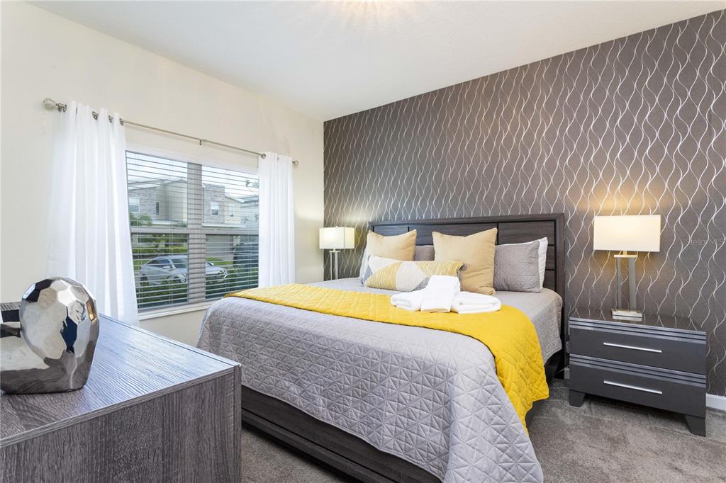 Beautifully furnished 4-bedroom townhome in the sought-after ChampionsGate resort community! No rear neighbours, This two-story layout features a convenient downstairs bedroom and full bath, along with a spacious upstairs master suite and two additional bedrooms. The open-concept design includes a modern kitchen that flows into the bright and airy living room, leading out to a private screened-in patio with a pool — ideal for relaxing or entertaining guests. Upstairs, two themed bedrooms create a fun and immersive experience for guests — one inspired by Mickey Mouse and another with a The Princess motif. The generously sized master suite includes a well-appointed bathroom with double sinks and plenty of natural light. As part of ChampionsGate, residents enjoy access to a world-class clubhouse with a restaurant, bar, fitness center, movie theater, and more. Outdoor amenities include a resort-style pool, splash pad, water slides, and a lazy river. Just under 7 miles from Disney, this home is perfect for short-term rentals, family vacations, or a second home in the heart of Orlando’s entertainment corridor.