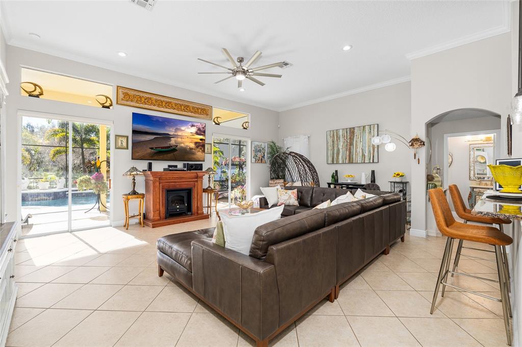 Welcome to 5018 River Gem Avenue, an exceptional one-story pool estate with serene pond views in the prestigious Summerport community of Windermere, perfectly positioned for luxury living, convenience, and resort-style enjoyment — only 20 minutes from the Disney Theme Parks, Disney Springs, premier shopping, dining, and major roadways. This 3-bedroom, 2.5-bath, 2,379 sq ft showpiece features a refined split floor plan with 10- and 12-foot ceilings, abundant natural light, and new tile and marble flooring throughout (no carpet). Custom interior finishes elevate the living spaces, while tranquil water views grace multiple rooms. Recent high-end improvements include a new pool screen enclosure (Jan 2025), vinyl/iron fencing (2023), roof (2018), tankless water heater (2017), HVAC (2017), and Kinetico water softener & reverse osmosis system (2023). A natural gas line is in place for future chef-ready upgrades. The gourmet kitchen boasts granite countertops, stainless steel appliances, wood cabinetry, a raised breakfast bar, and a cozy nook overlooking the great room and pool. Designed for effortless entertaining, the interior flows to the travertine-finished, screen-enclosed lanai, extended patio, and solar-heated saltwater pool with a new pool pump (2025) and salt cell (2024, with warranty) — all framed by calming pond vistas. The primary suite is a private sanctuary with a tray ceiling, dual walk-in closets, garden tub, electronic window treatments, and direct access to outdoor living. Additional highlights include a pool-access half bath, oversized split garage with high ceilings and deep storage, and impeccably landscaped, low-maintenance grounds with mature fruit trees (lemon, lime, avocado, guava and papaya). Living in Summerport means enjoying an unparalleled lifestyle. Residents have access to the community’s exclusive clubhouse and pool complex with fitness center and social spaces at Summerport Residential POA Clubhouse. Meandering walking and biking trails, parks, and green spaces provide daily opportunities for outdoor recreation just steps from home. The nearby Summerport Neighborhood Park offers playgrounds, picnic areas, and scenic paths for all ages. For everyday convenience, Cornerstone at Summerport village-style shopping is just around the corner, providing groceries, cafés, services, and more. Downtown Windermere and Winter Garden’s vibrant boutiques, specialty dining, and lifestyle retail are also moments away, with premier destinations like Winter Garden Village and The Grove reachable in under 15–20 minutes. This remarkable home blends luxury, comfort, and lifestyle — ideal as a primary residence, second home, or Florida retreat with everything you want just minutes away.