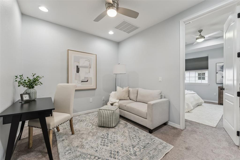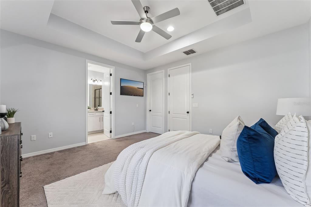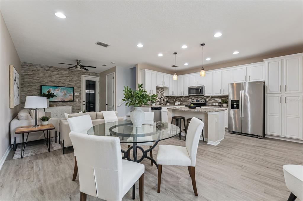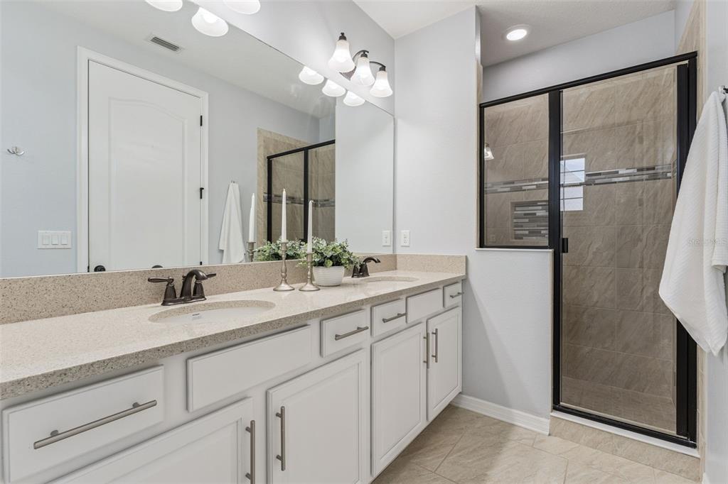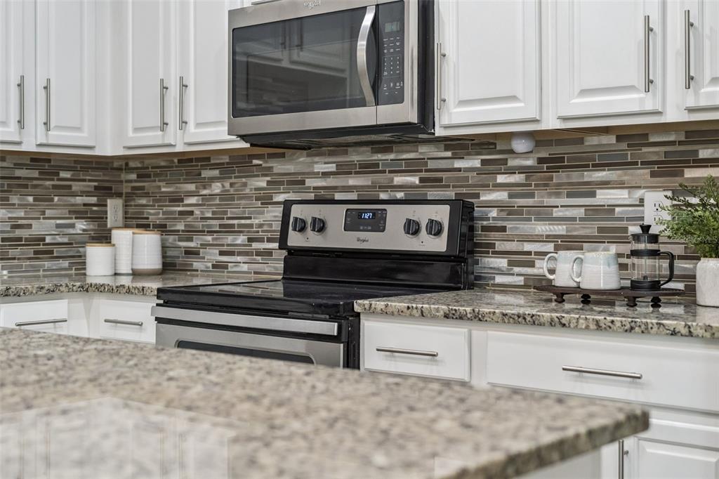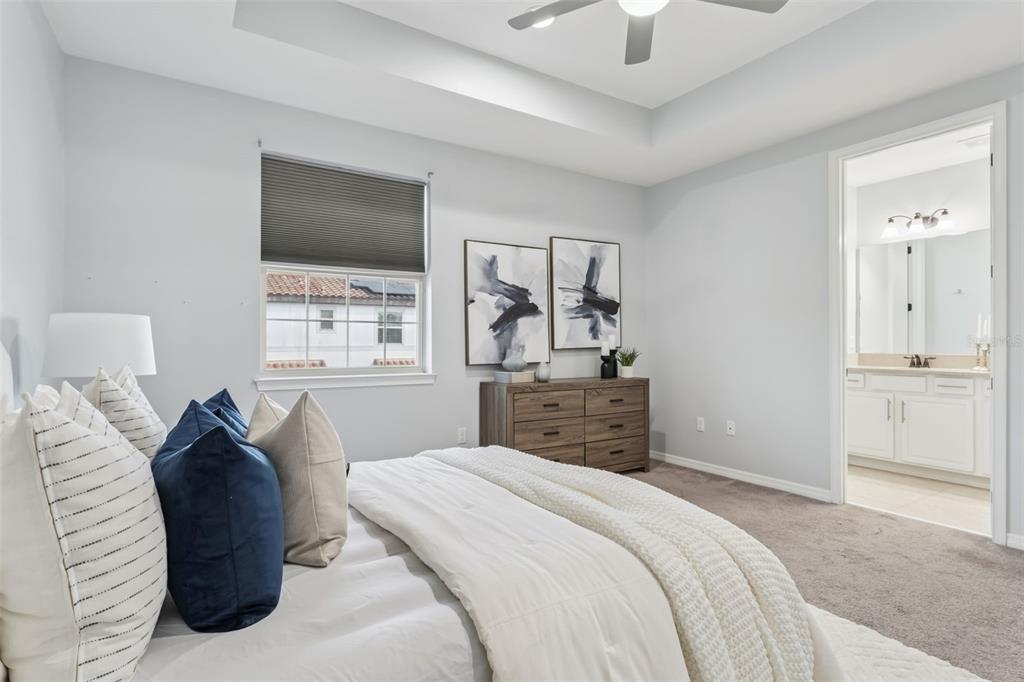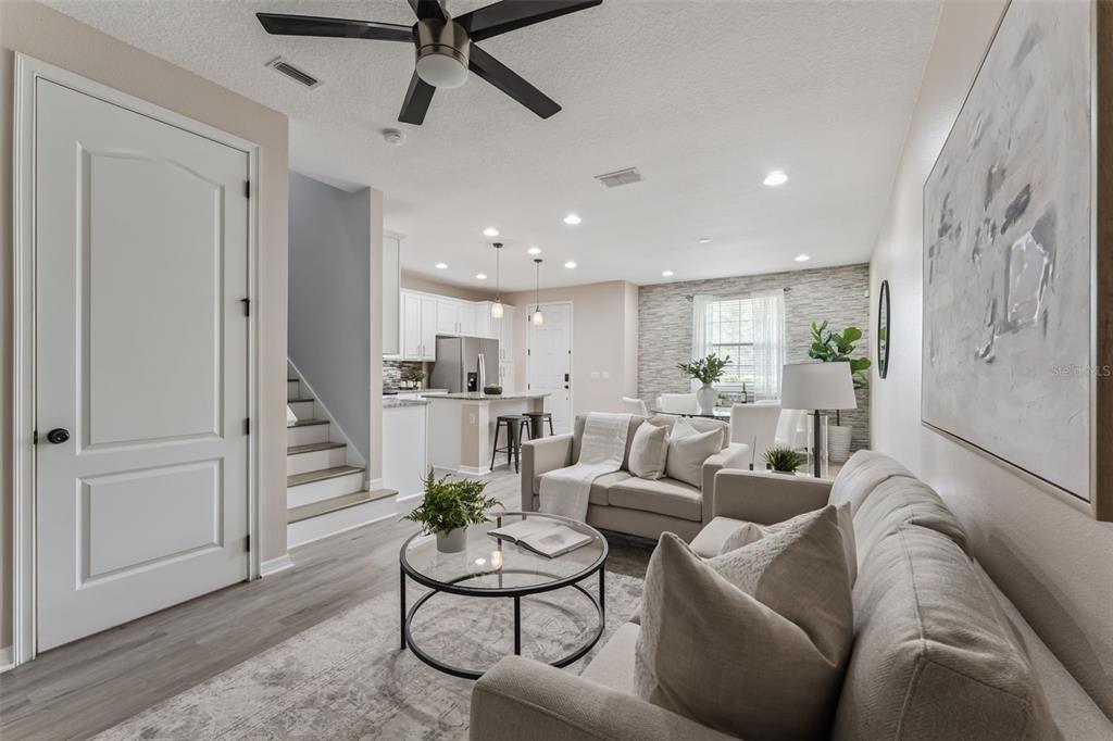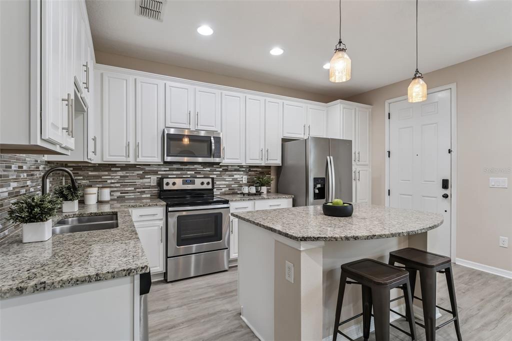 Welcome to this gorgeous 2 bedroom, 2 and a half bath townhome located in the guard-gated Eagle Creek community. Eagle Creek is loaded with incredible amenities, including resort-style pools, basketball courts, fitness center, tennis courts, dog park, playground, and scenic walking trails. Enter into an open and bright living space that flows naturally between the living room space and kitchen. The modern kitchen features granite countertops, a stylish backsplash as well as center island. The living room is accented by two beautiful stone feature walls. The stairs to the second level lead to a versatile loft area ideal for an office or media space. You'll also find two spacious bedrooms, each with dual-sinks, walk in showers and spacious walk-in closets. Additional highlights include upgraded wood staircase, paver driveway and epoxy-coated garage floors. Enjoy your morning coffee on the inviting front porch while taking in the peaceful conservation view. Home is walking distance to local restaurants and shops and in close proximity to Medical City, Lake Nona Town Center, USTA, Orlando International Airport!