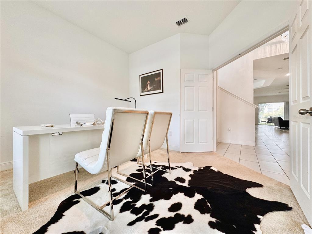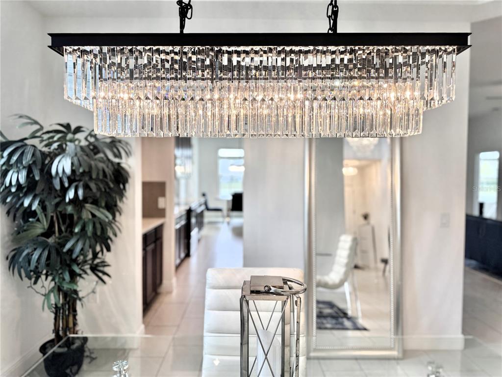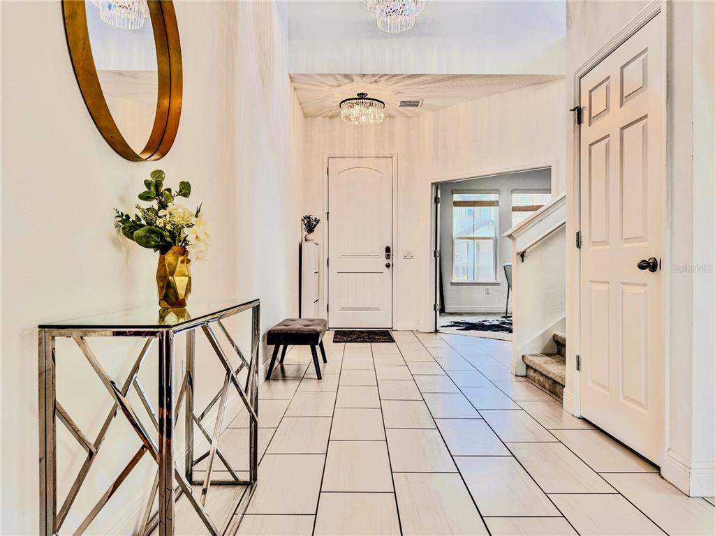 Experience the elegance of Westside Village in Windermere, where timeless design meets modern luxury. This five-bedroom, four-bath residence spans 3,717 square feet of thoughtfully designed living space, built in 2018. The foyer welcomes you with porcelain tile floors, vaulted ceilings, and chandelier lighting that set a tone of quiet sophistication. French doors open to a versatile home office, while the formal dining room with tray ceiling creates the perfect setting for gatherings. The open-concept great room connects seamlessly to the chef's kitchen featuring a butler's pantry, premium finishes, and expansive sightlines. Enjoy peaceful water and fountain views, or open the sliding glass doors to the covered lanai, ideal for relaxing under the Disney fireworks. The owner's suite offers a serene retreat with natural light, spa-inspired bath with soaking tub, dual vanities, and a spacious walk-in closet. Upstairs, a generous loft provides flexible living for media, games, or study, while each bedroom includes a walk-in closet with a private sink. Designed for efficiency and comfort, this home features dual AC systems, a whole-house dehumidifier, and dual-pane storm windows. Residents enjoy resort-style amenities a community pool, walking trails, and parks within the sought-after Windermere school district, just minutes from dining, shopping, and Disney.