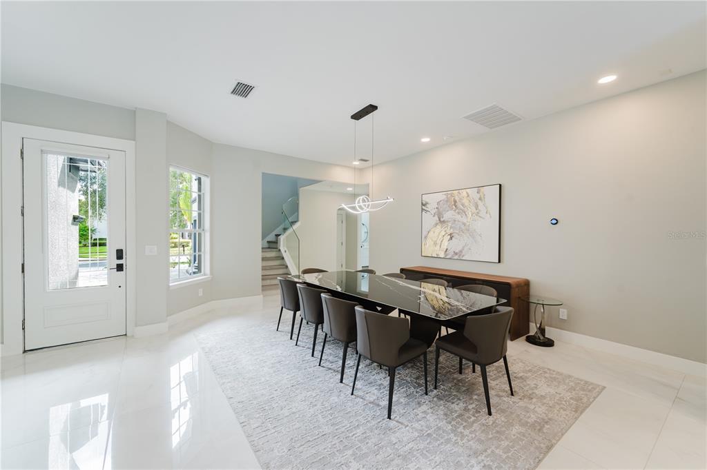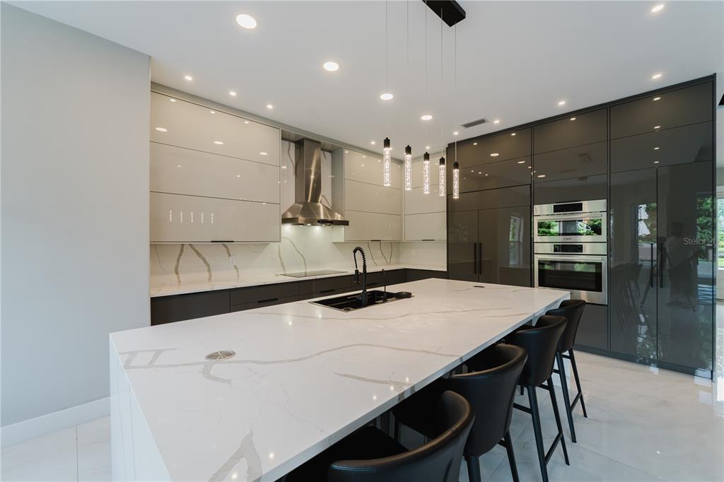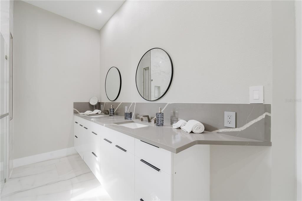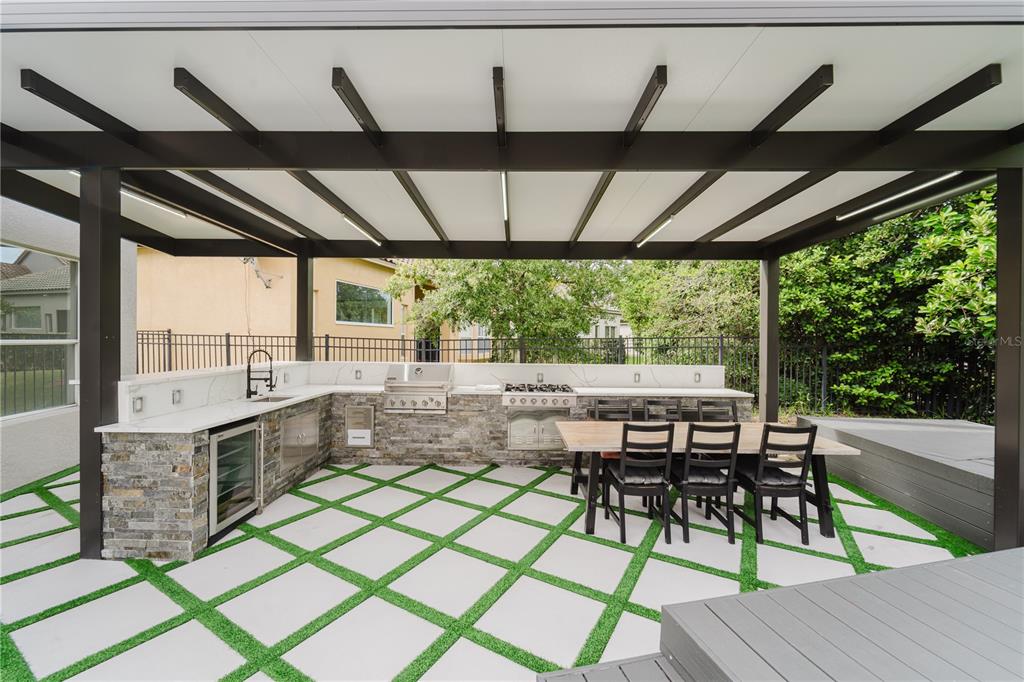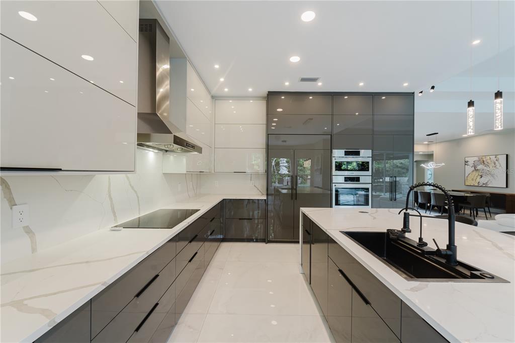 Stunning residence with a private fenced backyard, located in the highly sought-after gated community of Belmere in Windermere, just minutes from the town center. Featuring 4 bedrooms, 4 bathrooms, and approximately 2,800 sq. ft. of air-conditioned living space, this home immediately captivates with its elegant Mediterranean architecture and lush tropical landscaping. Fully renovated this year, the home features new flooring, a kitchen, bathrooms, and both interior and exterior paint, perfectly combining technology, comfort, and sophistication. The integrated sound system extends throughout the house, while the gourmet kitchen impresses with a ceramic range, built-in refrigerator, quartz countertops, and LED lighting. Motorized cabinets, a built-in oven and microwave, a large pantry, and a sink with a glass washer complete this space designed for culinary enthusiasts. Also, a state-of-the-art whole-house water filtration system is installed at the main water line, treating all the water that enters the house. A newly constructed deck is ready for the installation of an oversized jacuzzi, with all plumbing already in place. Additional features such as touch-activated LED stair lighting and vitrified epoxy-coated garage flooring further elevate the living experience. The home offers spacious, bright, and contemporary living areas. The family room, filled with natural light, opens directly to the outdoor area, creating a seamless connection between indoor and garden spaces. The expansive and elegant kitchen serves as the heart of the home, ideal for family gatherings around the central island. The master suite is a true private retreat, offering serene garden views and a luxurious bathroom featuring a soaking tub, the perfect spot to unwind after a long day. The outdoor area provides a tranquil and inviting setting, ideal for family gatherings or moments of peace surrounded by nature. The outdoor kitchen also provides a 6-burner gas stove, gas grill, sink, and a mini refrigerator.