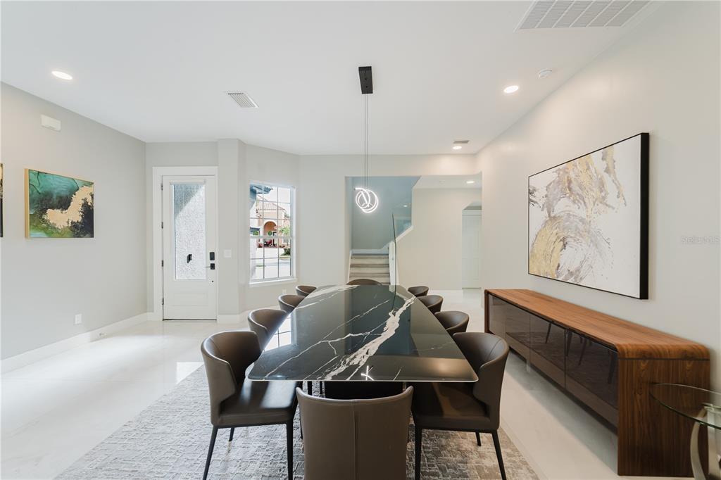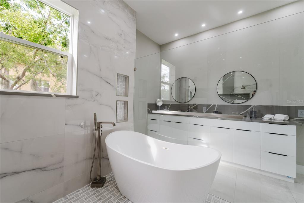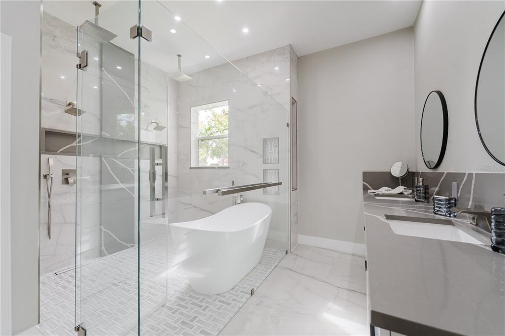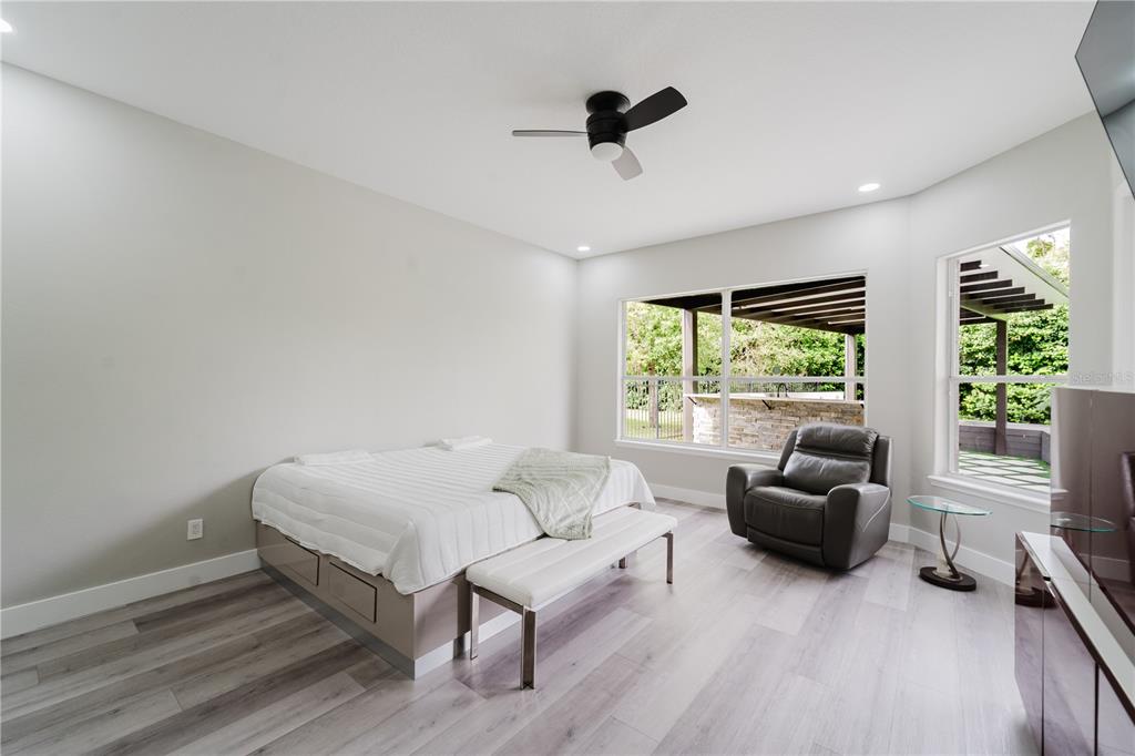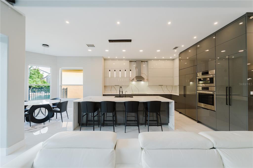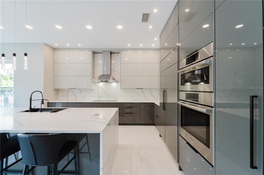Stunning residence with a private fenced backyard, located in the highly sought-after gated community of Belmere in Windermere, just minutes from the town center. Featuring 4 bedrooms, 4 bathrooms, and approximately 2,800 sq. ft. of air-conditioned living space, this home immediately captivates with its elegant Mediterranean architecture and lush tropical landscaping. Fully renovated this year, the home features new flooring, a kitchen, bathrooms, and both interior and exterior paint, perfectly combining technology, comfort, and sophistication. The integrated sound system extends throughout the house, while the gourmet kitchen impresses with a ceramic range, built-in refrigerator, quartz countertops, and LED lighting. Motorized cabinets, a built-in oven and microwave, a large pantry, and a sink with a glass washer complete this space designed for culinary enthusiasts. Also, a state-of-the-art whole-house water filtration system is installed at the main water line, treating all the water that enters the house. A newly constructed deck is ready for the installation of an oversized jacuzzi, with all plumbing already in place. Additional features such as touch-activated LED stair lighting and vitrified epoxy-coated garage flooring further elevate the living experience. The home offers spacious, bright, and contemporary living areas. The family room, filled with natural light, opens directly to the outdoor area, creating a seamless connection between indoor and garden spaces. The expansive and elegant kitchen serves as the heart of the home, ideal for family gatherings around the central island. The master suite is a true private retreat, offering serene garden views and a luxurious bathroom featuring a soaking tub, the perfect spot to unwind after a long day. The outdoor area provides a tranquil and inviting setting, ideal for family gatherings or moments of peace surrounded by nature. The outdoor kitchen also provides a 6-burner gas stove, gas grill, sink, and a mini refrigerator.